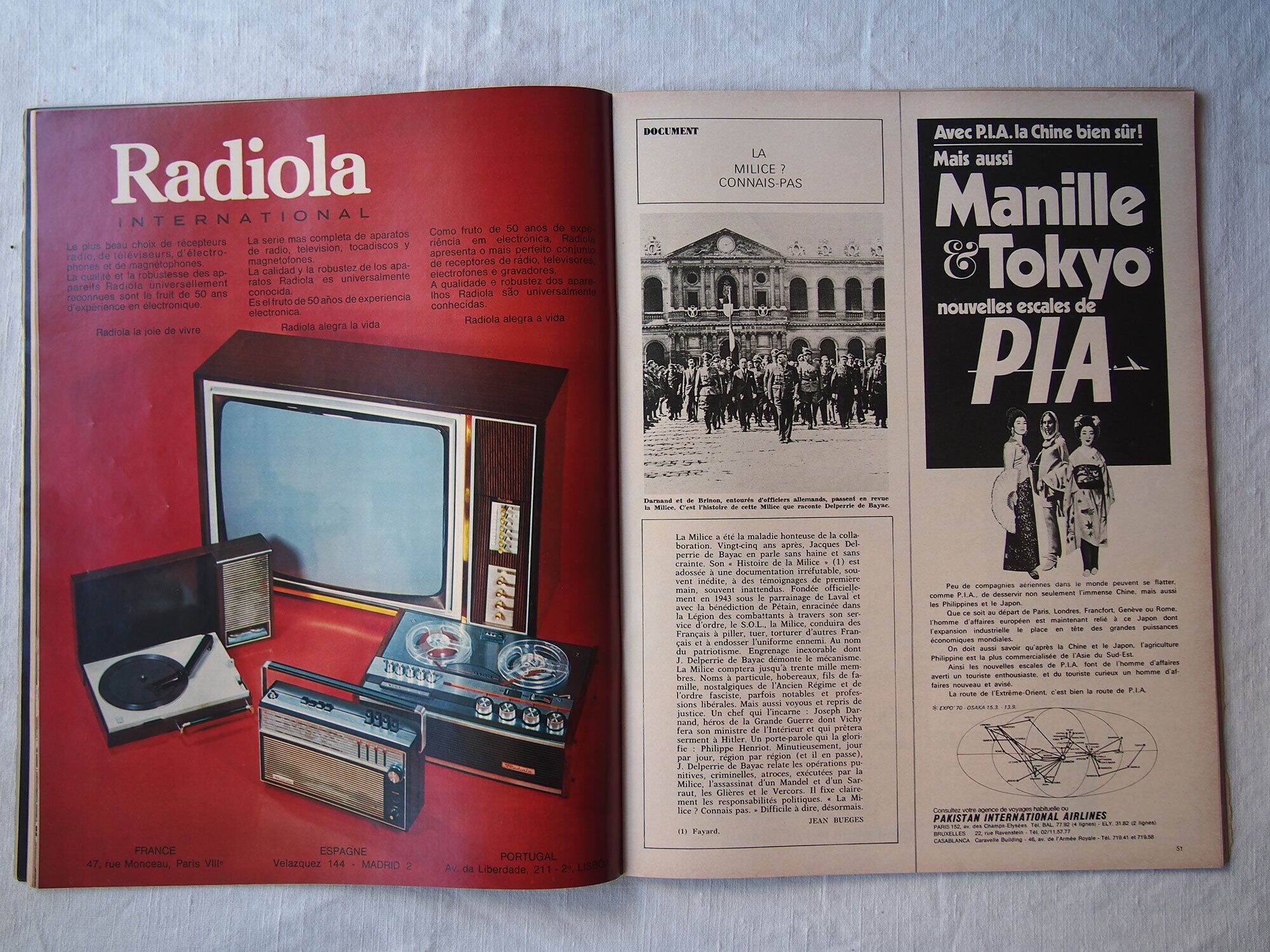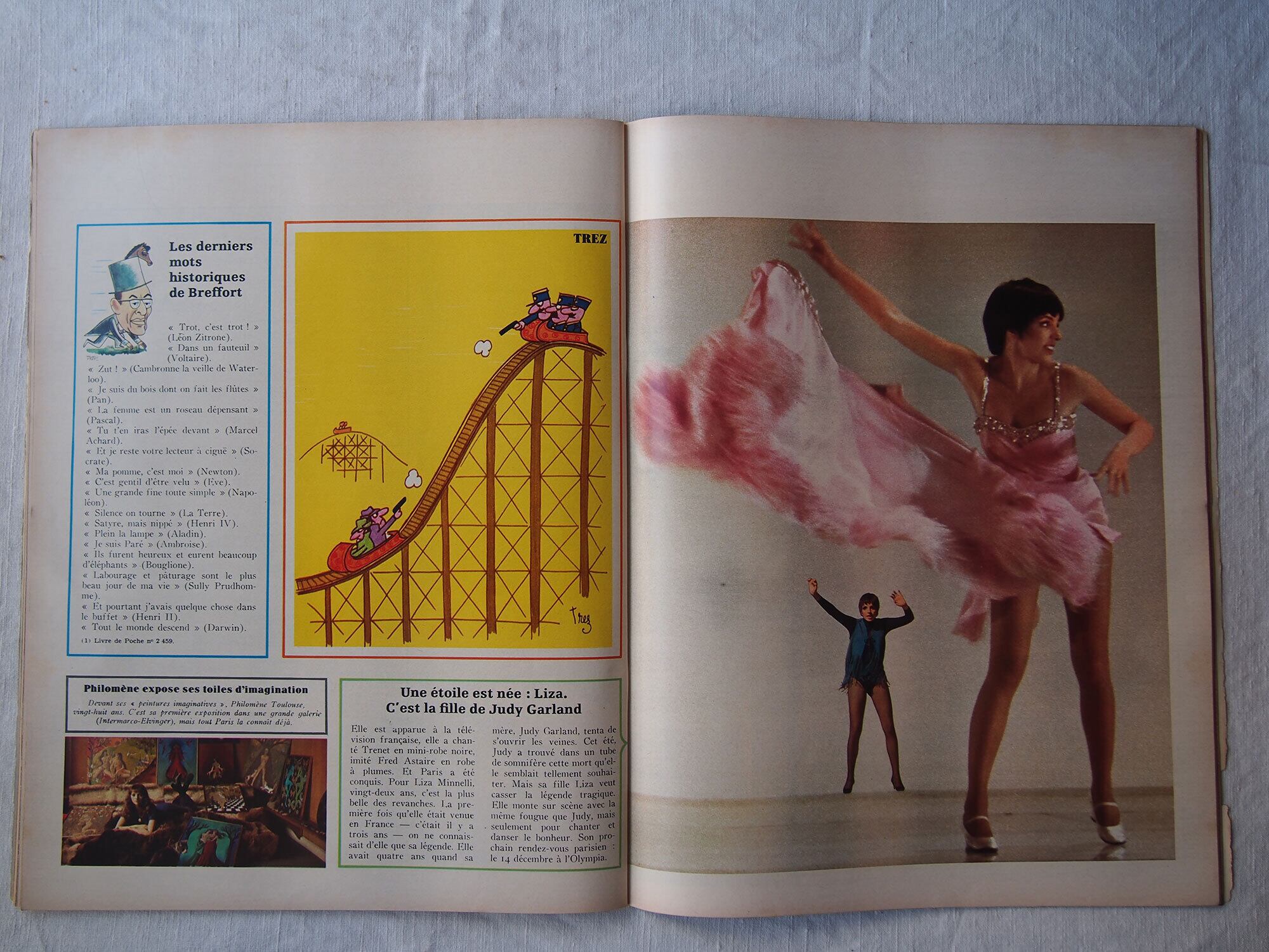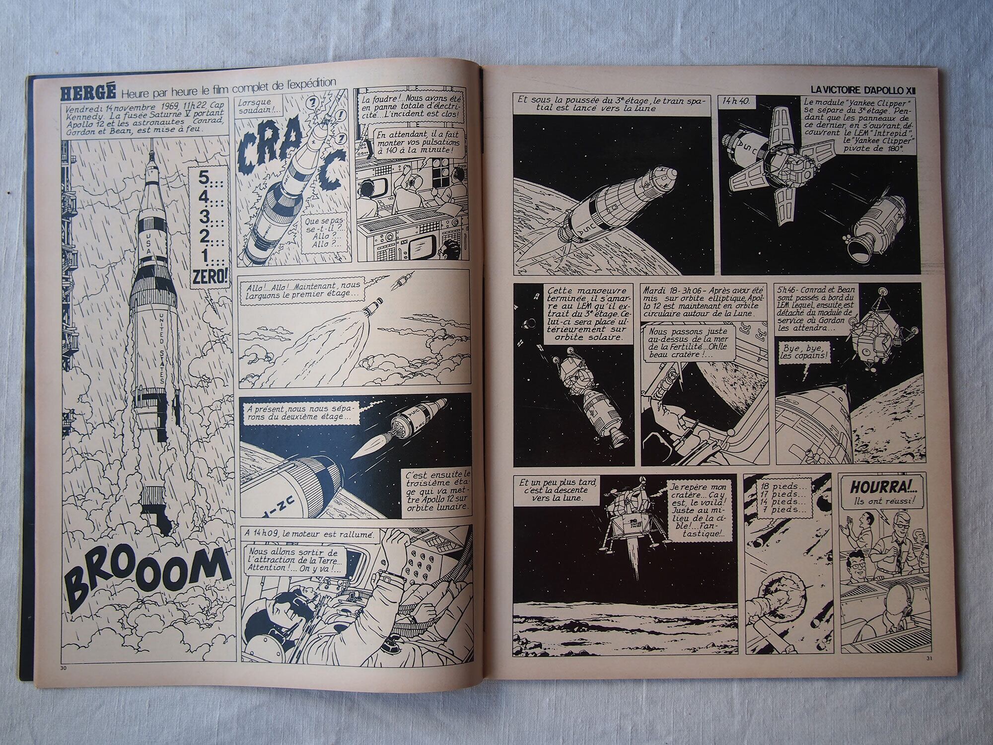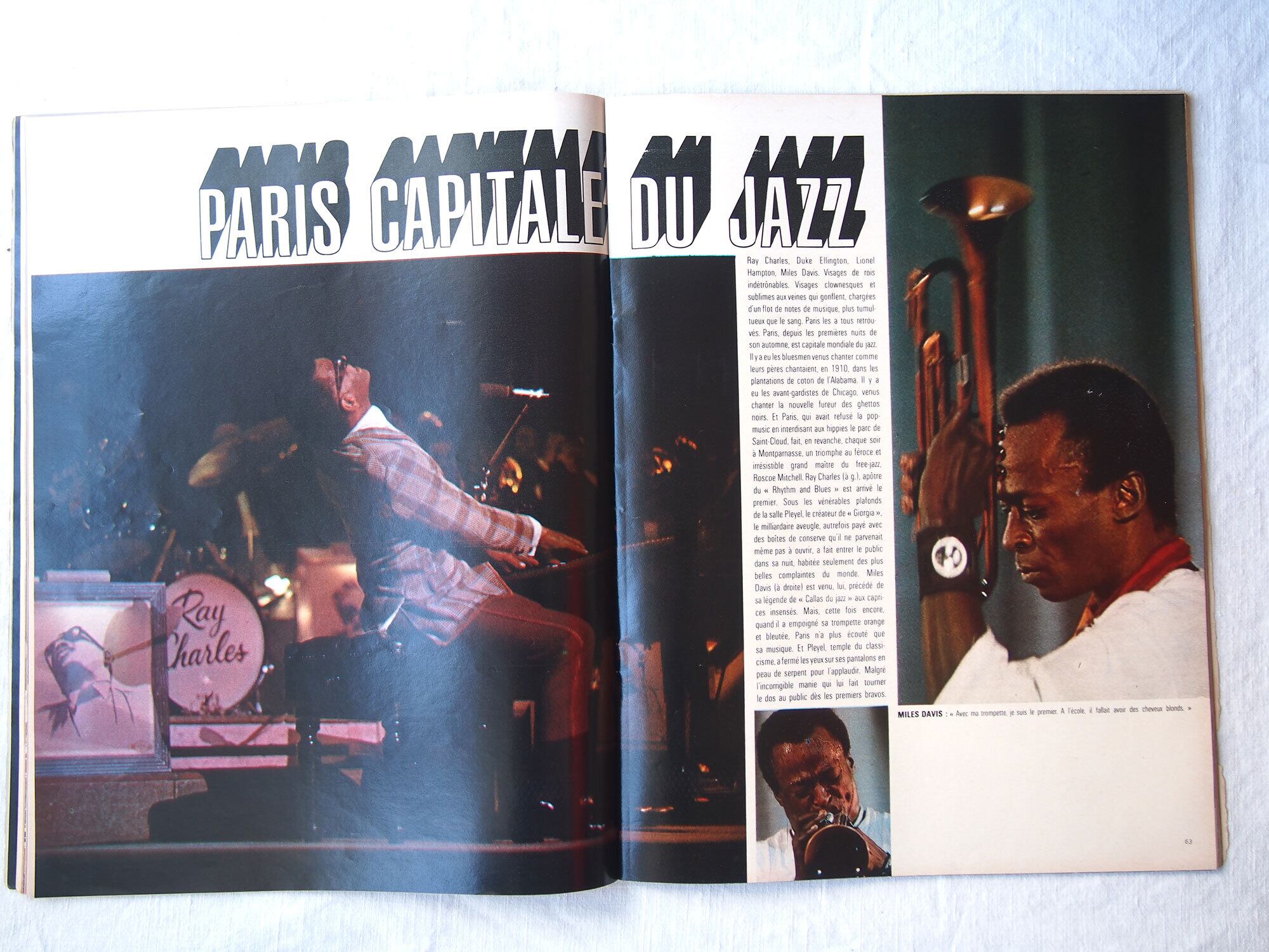 1969年11月29日発行のフランス週刊誌「Paris Match」。本号はアポロ12号の成功(人類による月探査ミッション)を特集した歴史的な一冊で、宇宙開発黄金期の空気を伝える貴重な資料です。他にケネディ家に関する記事や、モナコ公妃グレース・ケリーとレーニエ大公の社交界の様子も掲載されており、当時の政治・王室・文化を一度に楽しむことができます。他にも小澤征爾、マイルス・デイヴィス、シャガールなど。様々な広告、写真などあり資料としてはもちろん、インテリアやコレクションとしてもおすすめです。経年によるヤケ、スレ、角の傷みなどが見られますが、ページの欠損はみあたりませんでした。(詳細は画像をご確認ください)参考資料、リメイクなどにどうぞ。