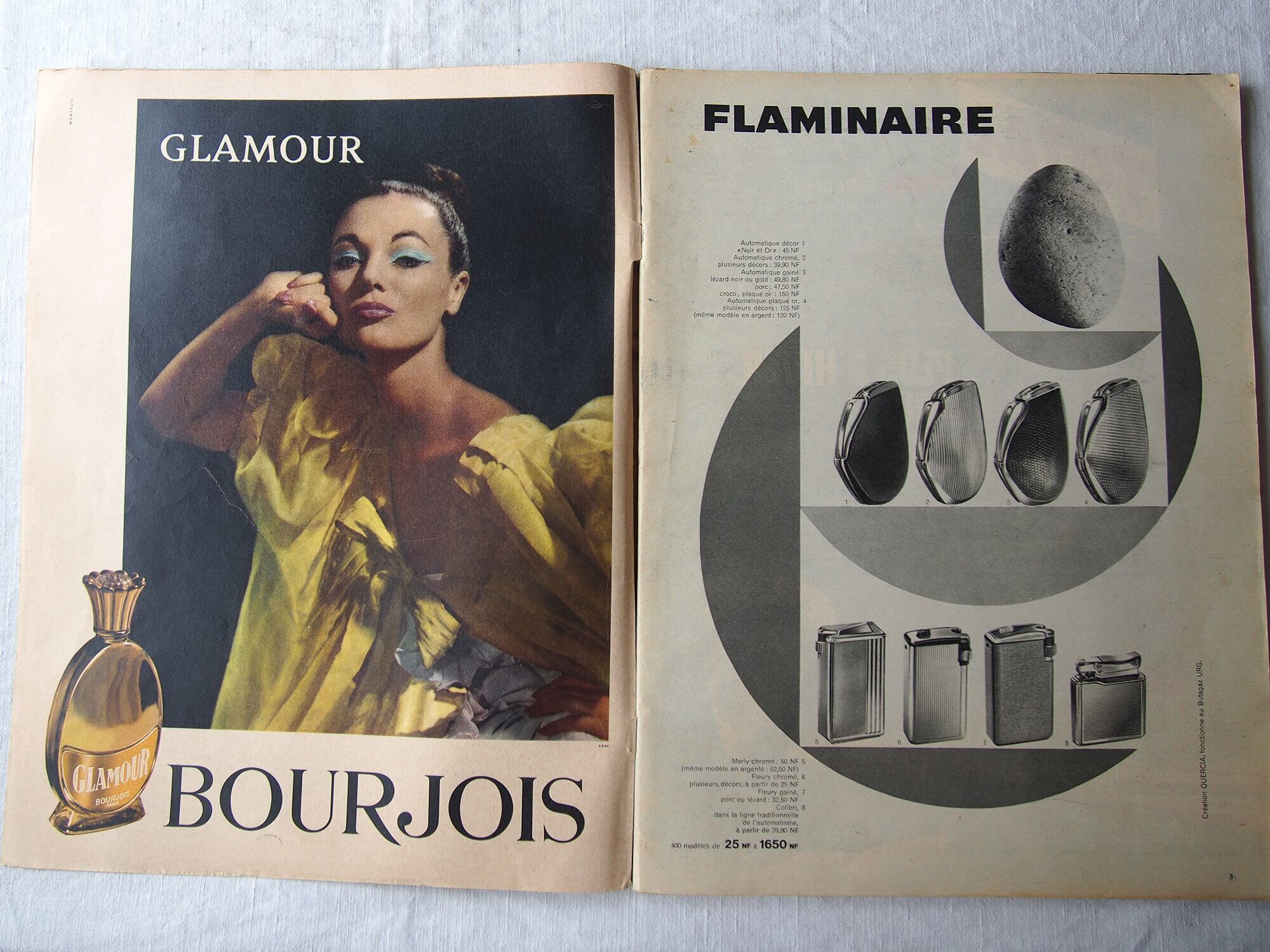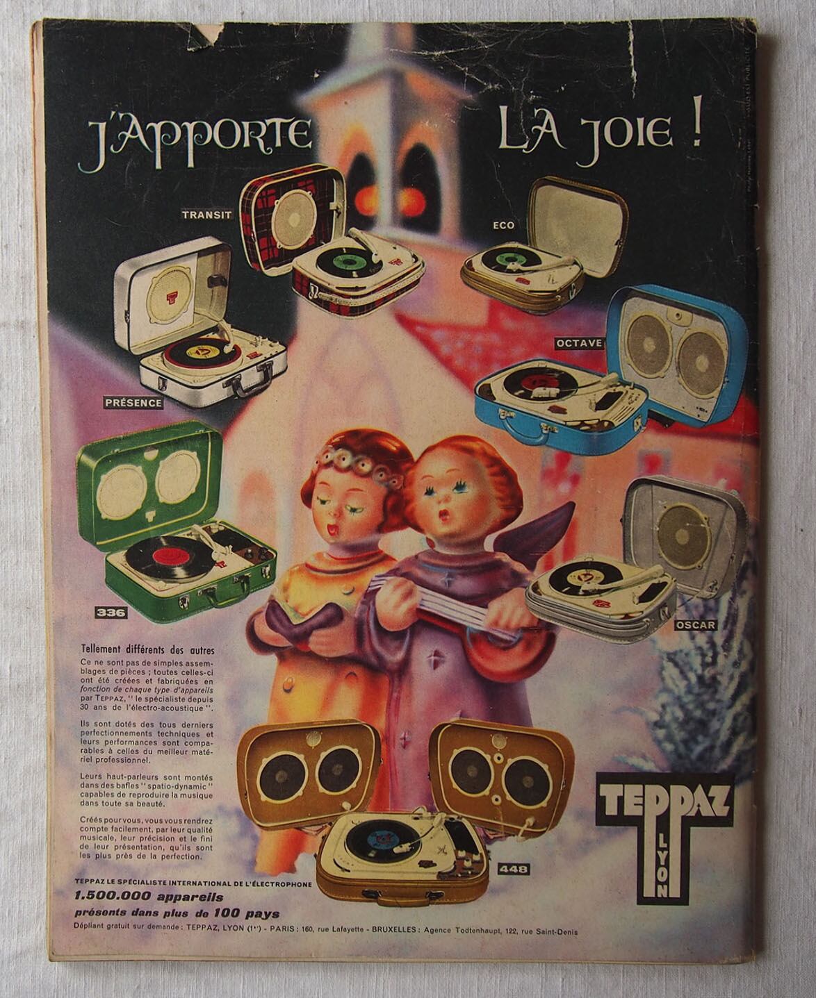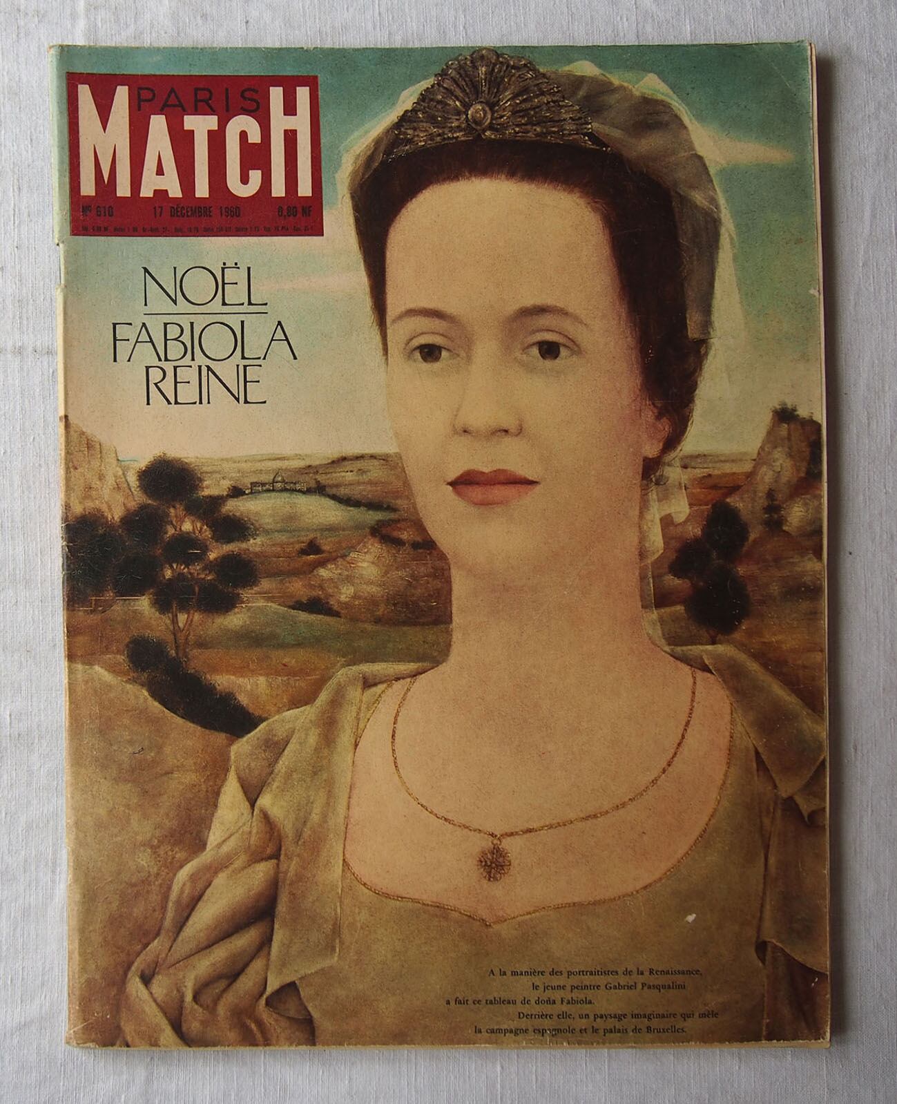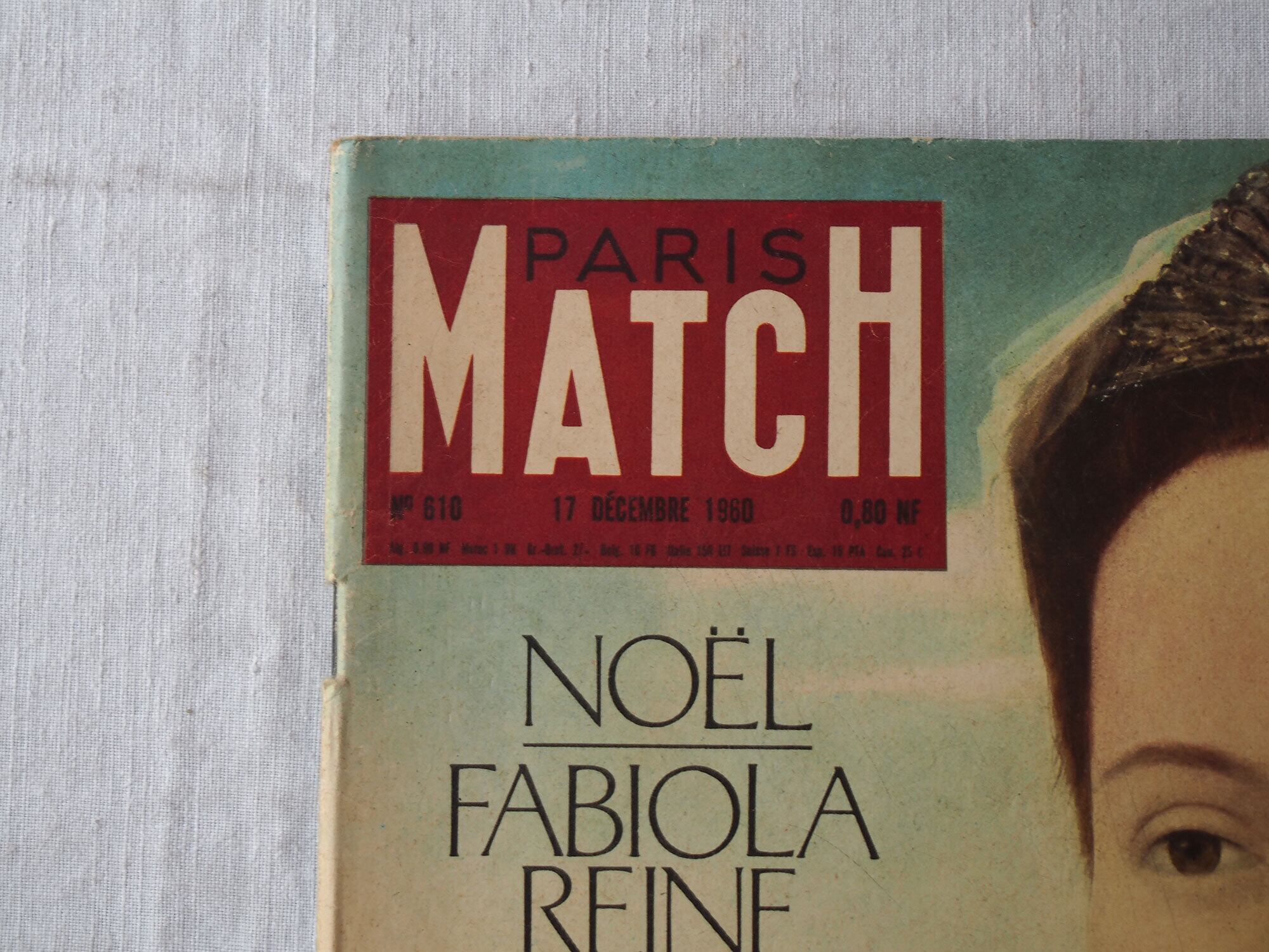 1960年12月17日号のフランス雑誌「Paris Match」。表紙はベルギー王妃。誌面には、歌姫マリア・カラスと実業家オナシス、ブリジット・バルドー、ハリウッド黄金期を代表するクラーク・ゲーブルとキャロル・ロンバートの物語、聖テレサの生涯など、当時の文化・芸術・映画など多岐にわたる記事が収められています。ファッション記事や様々な広告があり、コレクションや資料としてはもちろん、インテリアとしてもおすすめです。経年によるヤケ、スレ、角の傷み、後ろ表紙の破れなどが見られますが、ページの欠損はみあたりませんでした。(詳細は画像をご確認ください)参考資料、リメイクなどにどうぞ。