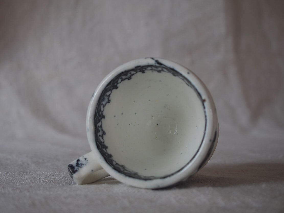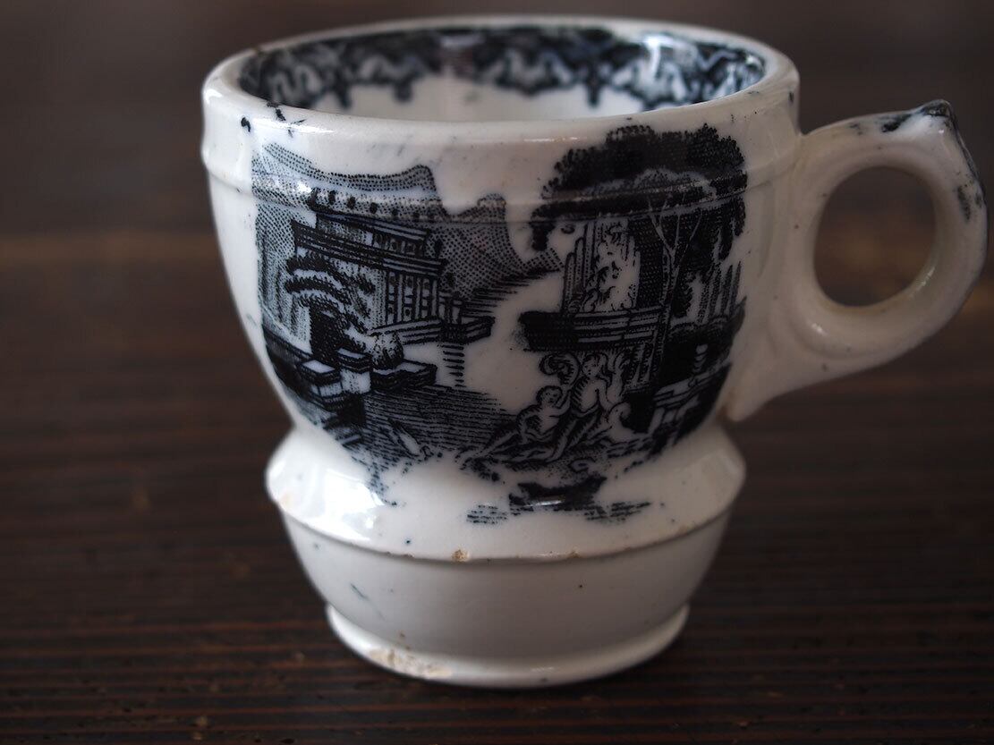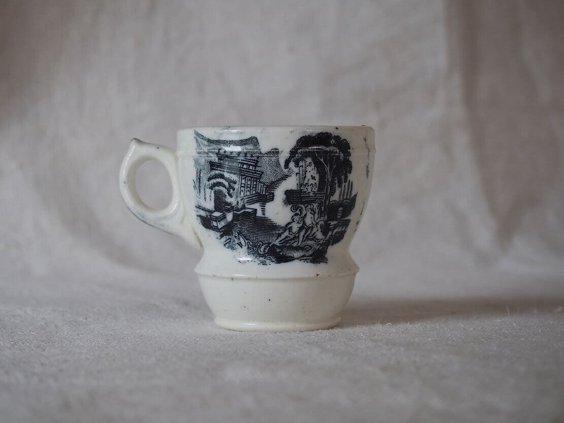 コーヒーカップ 19世紀 ヴィクトリアン様式 グリザイユ スペイン古陶 トランスファーウエア ブリュロカップ ビストロ ピックマン 工藝 エスプレッソ アンティーク /K527