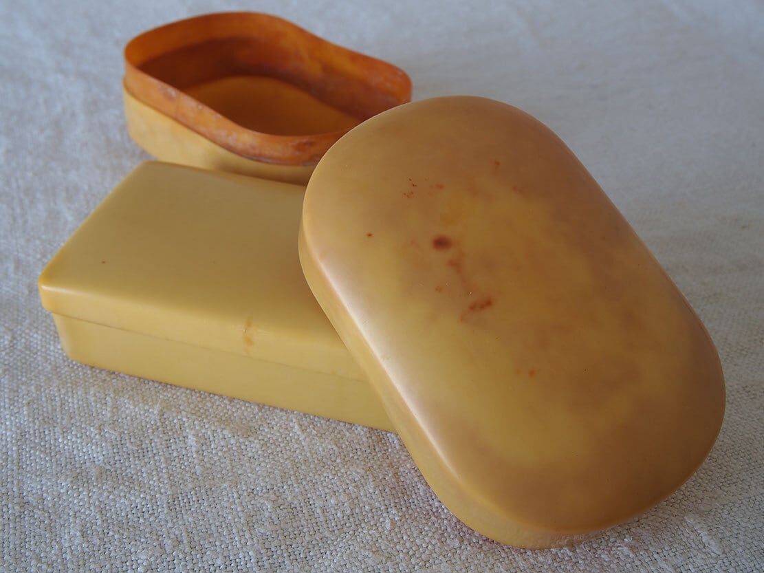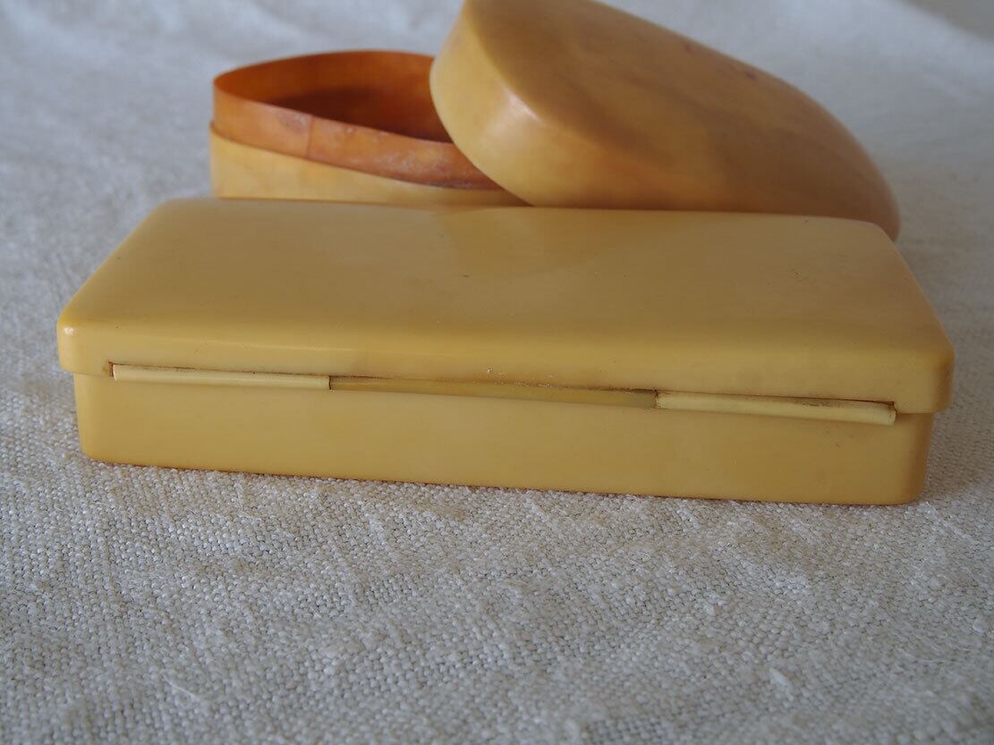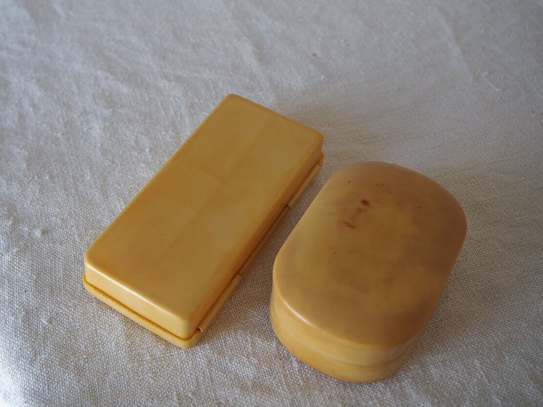 セルロイドのケース 2点 小物入れ 化粧道具 石鹸ケースクリーム入れ 1930年代 ヨーロッパ アンティーク/K571