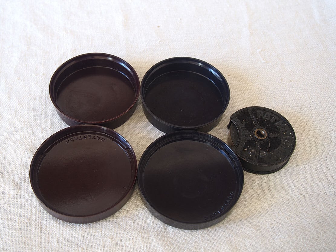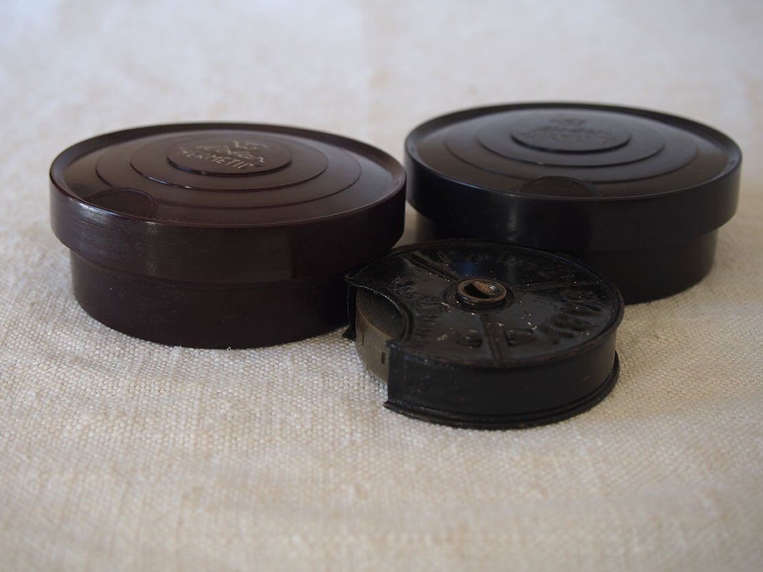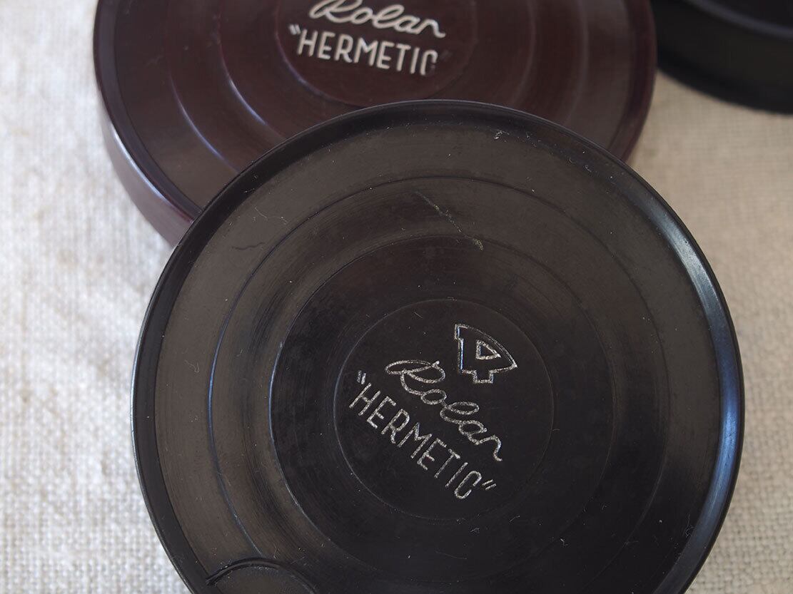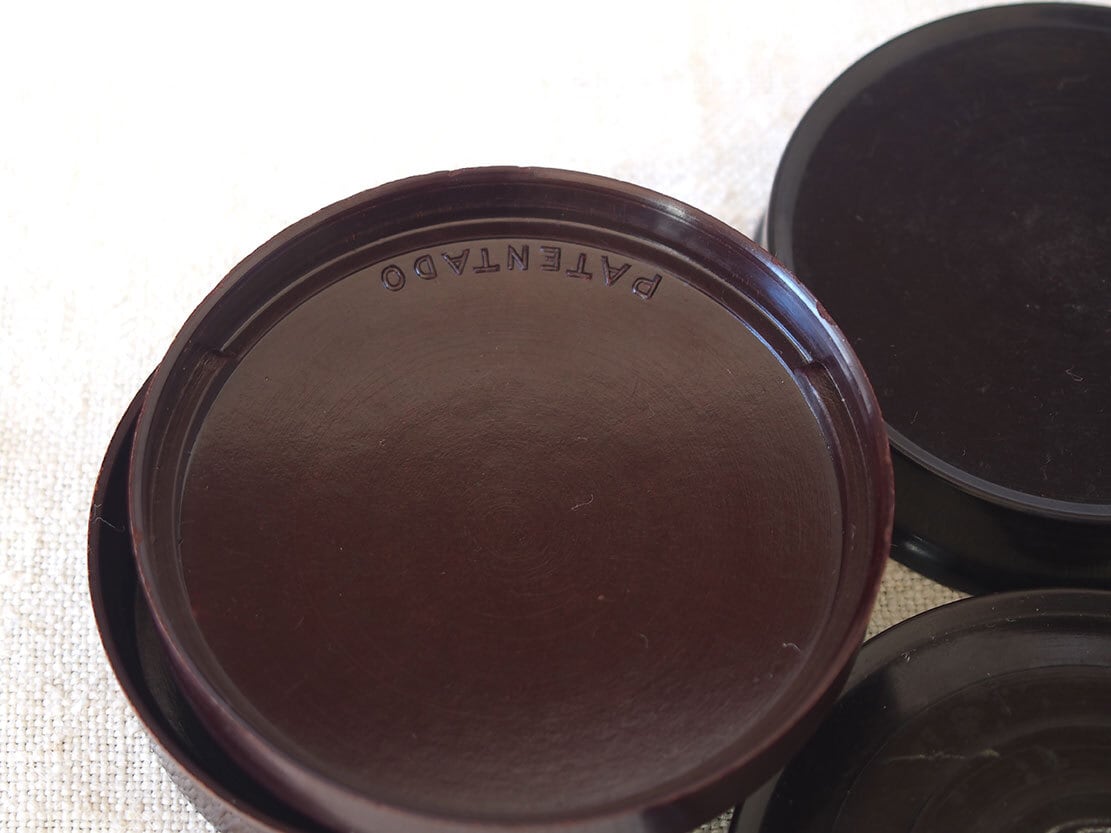 チョコレート色のベークライト タイプライター インクリボンケース 2個セット Rolan HERMETIC 1950年代 ヨーロッパ ヴィンテージ アンティーク/K574