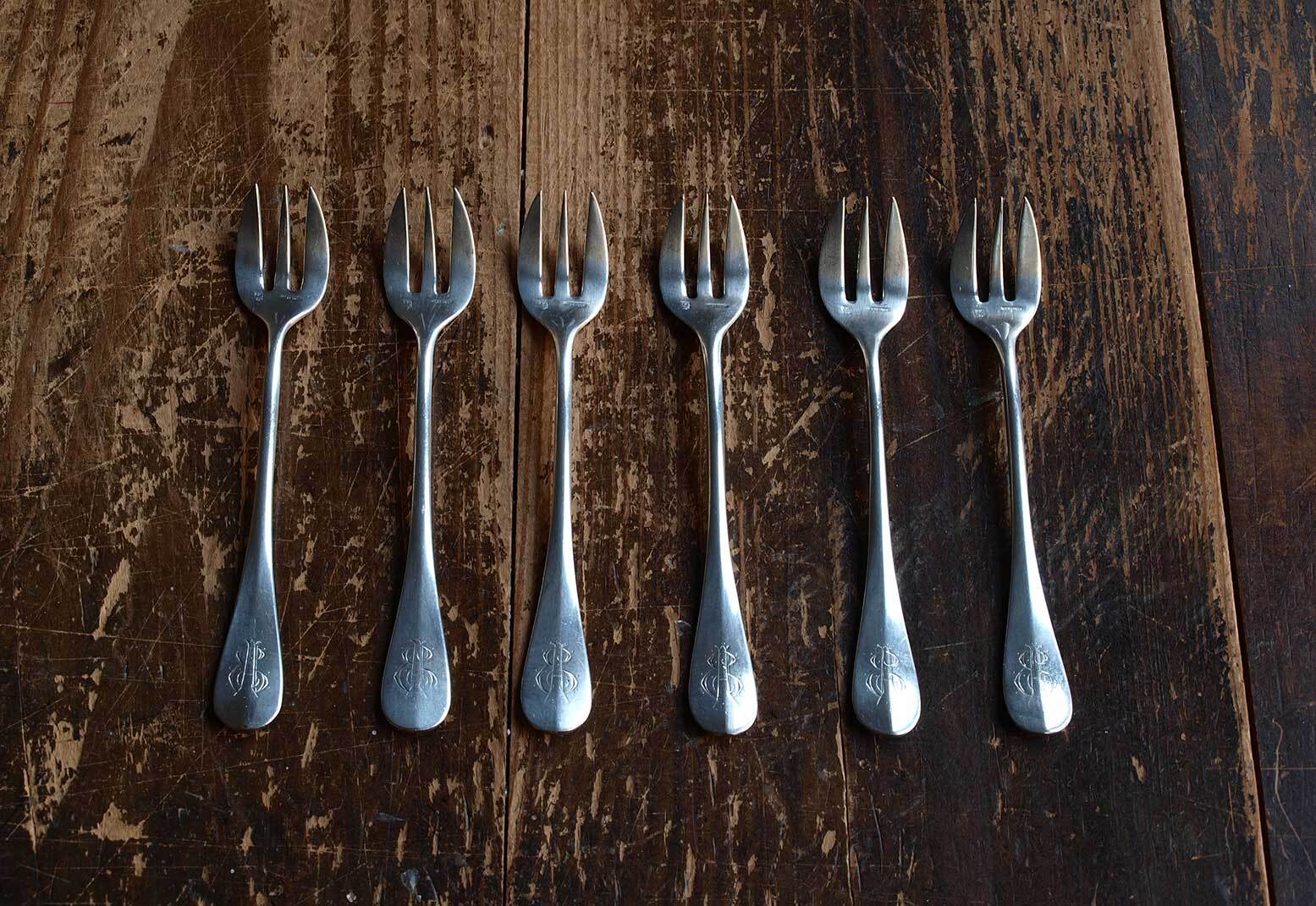 オイスターフォークセット 6本 エルキュイ ERCUIS フランス 洋銀 シルバープレート ヨーロッパ ヴィンテージ/G883