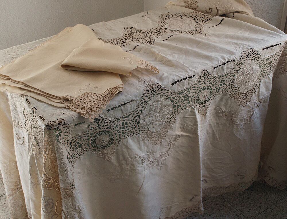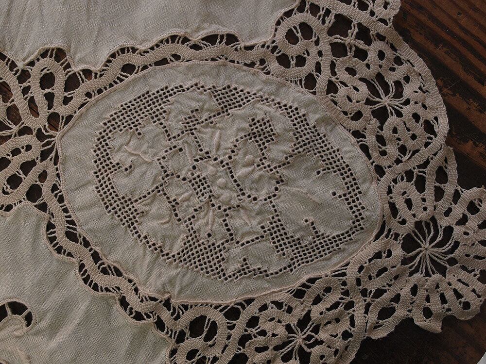 刺繍レース テーブルクロスとお揃いナプキン計12枚 167cm×248cm リネンフランス ヴィンテージ/G371
