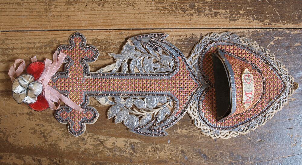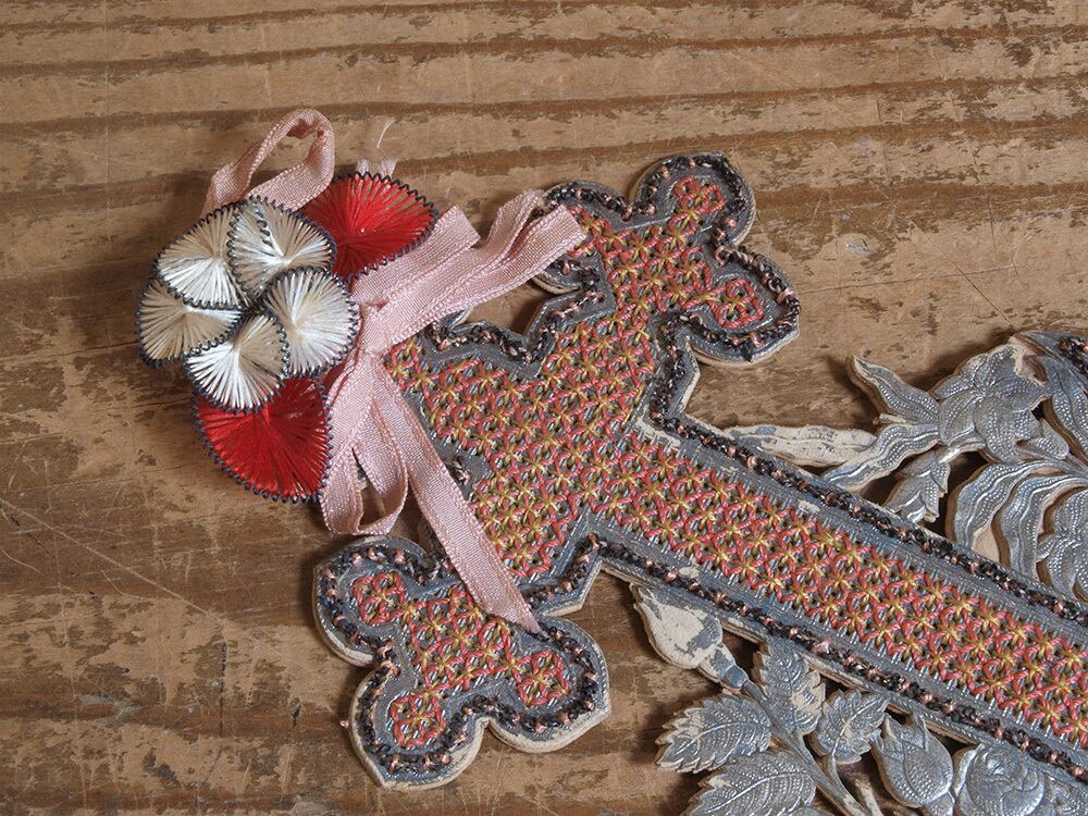 手刺繍パーフォレイテッド・ペーパーベネティエ 聖水盆 手芸 ヴィクトリアンアンティーク/ F253