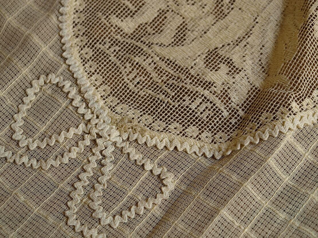 ヨーロッパのアンティーク市にて入手。1940年代前後。ラシェルレースのカーテン、上飾り、左右の3点セット。オーバル天使のモチーフ14cm×20cm。左右の長い物、裾から33cm、12cmにレース切り替えあり。上は3点ともギャザー寄せてあります、解いてお好きなサイズに直してお使いいただくことが可能です。 洗濯済み。参考資料、リメイク等にもいかがでしょう。ファブリック、衣装、手芸関連を得意としております。他の商品も是非ご覧下さい。