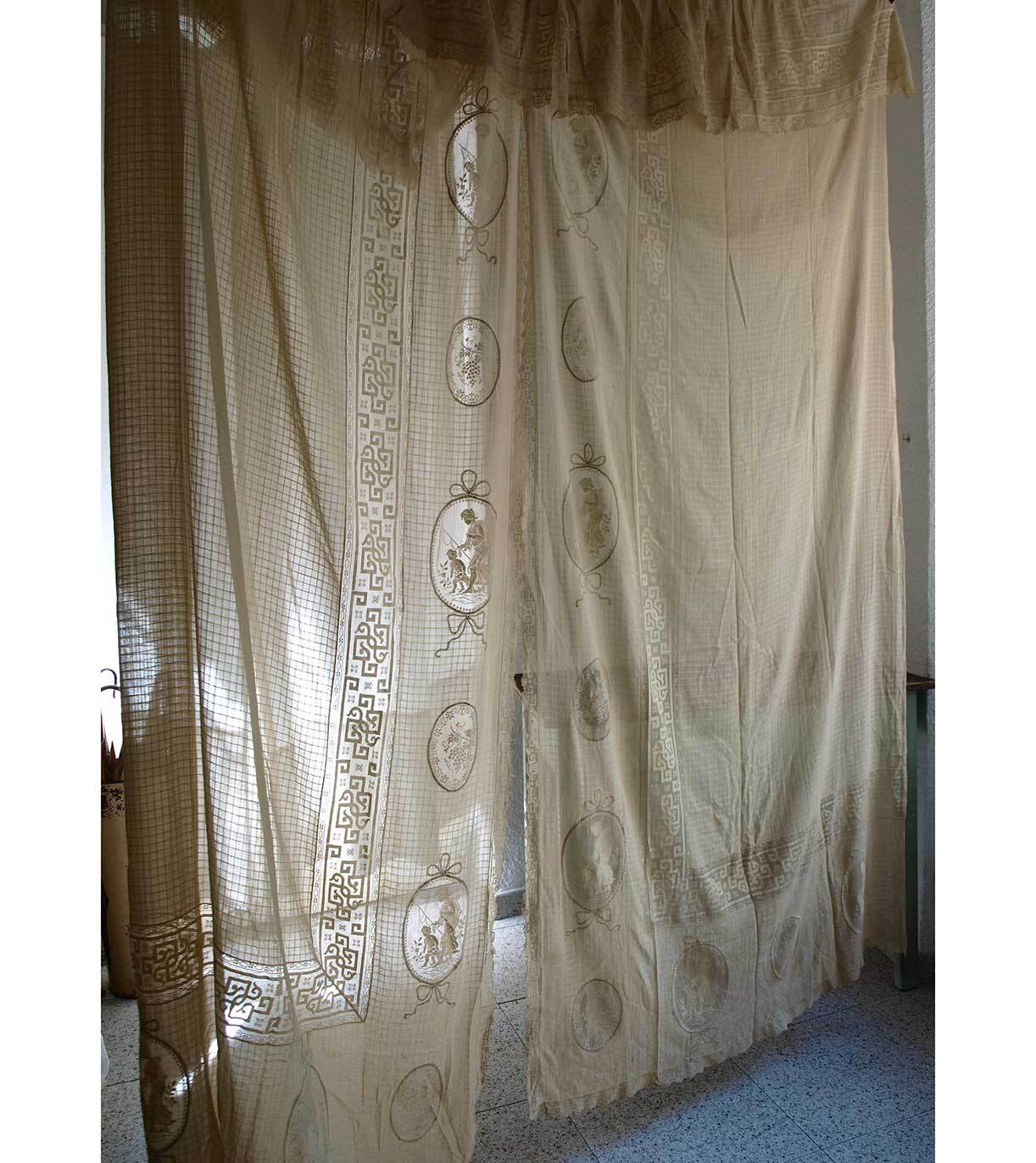 ラシェルレース カーテン 3点セット パネル 巾108cm×長290cm 刺繍モチーフ テキスタイル インテリア ヨーロッパ 欧州 ヴィンテージ/H047