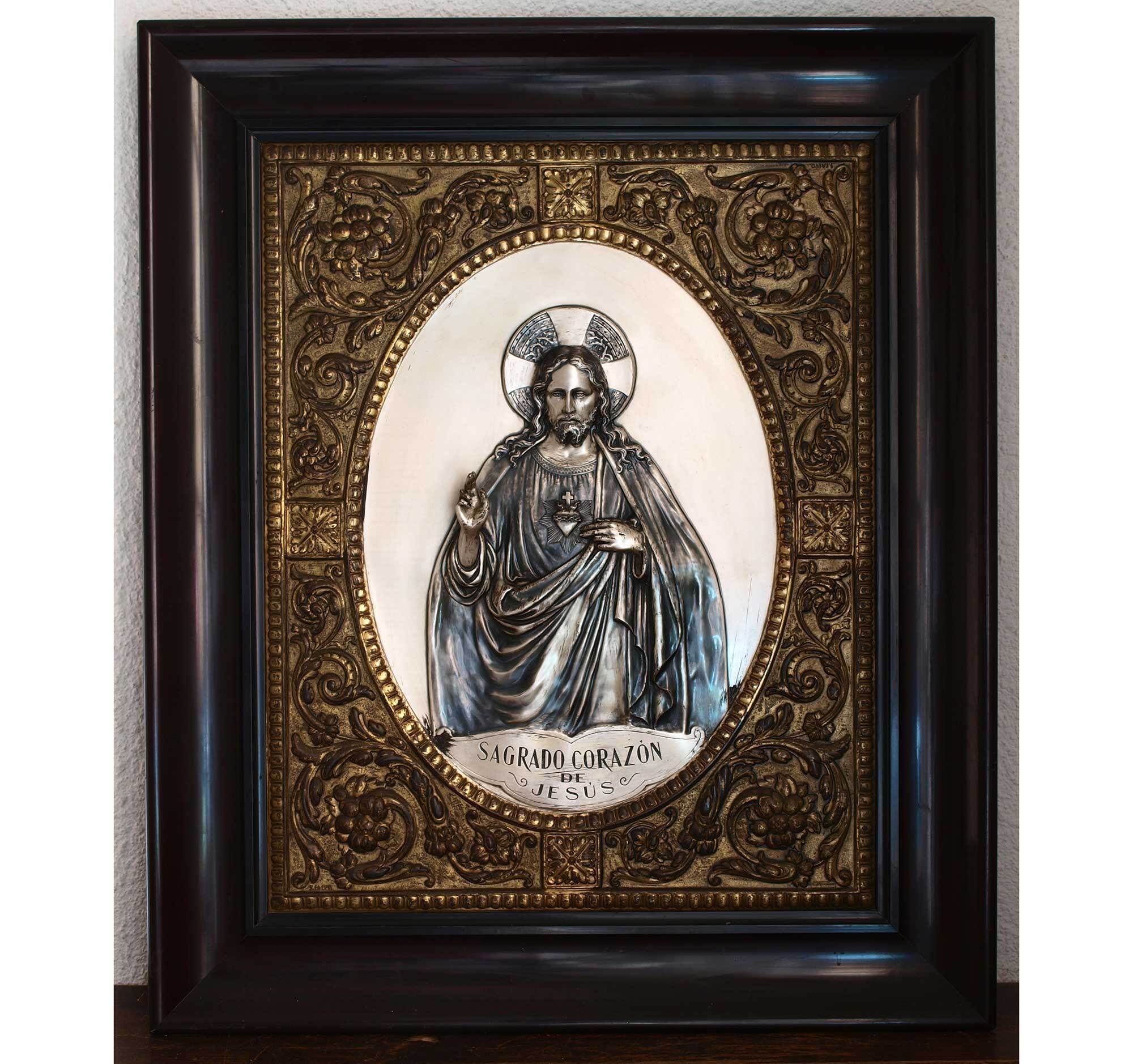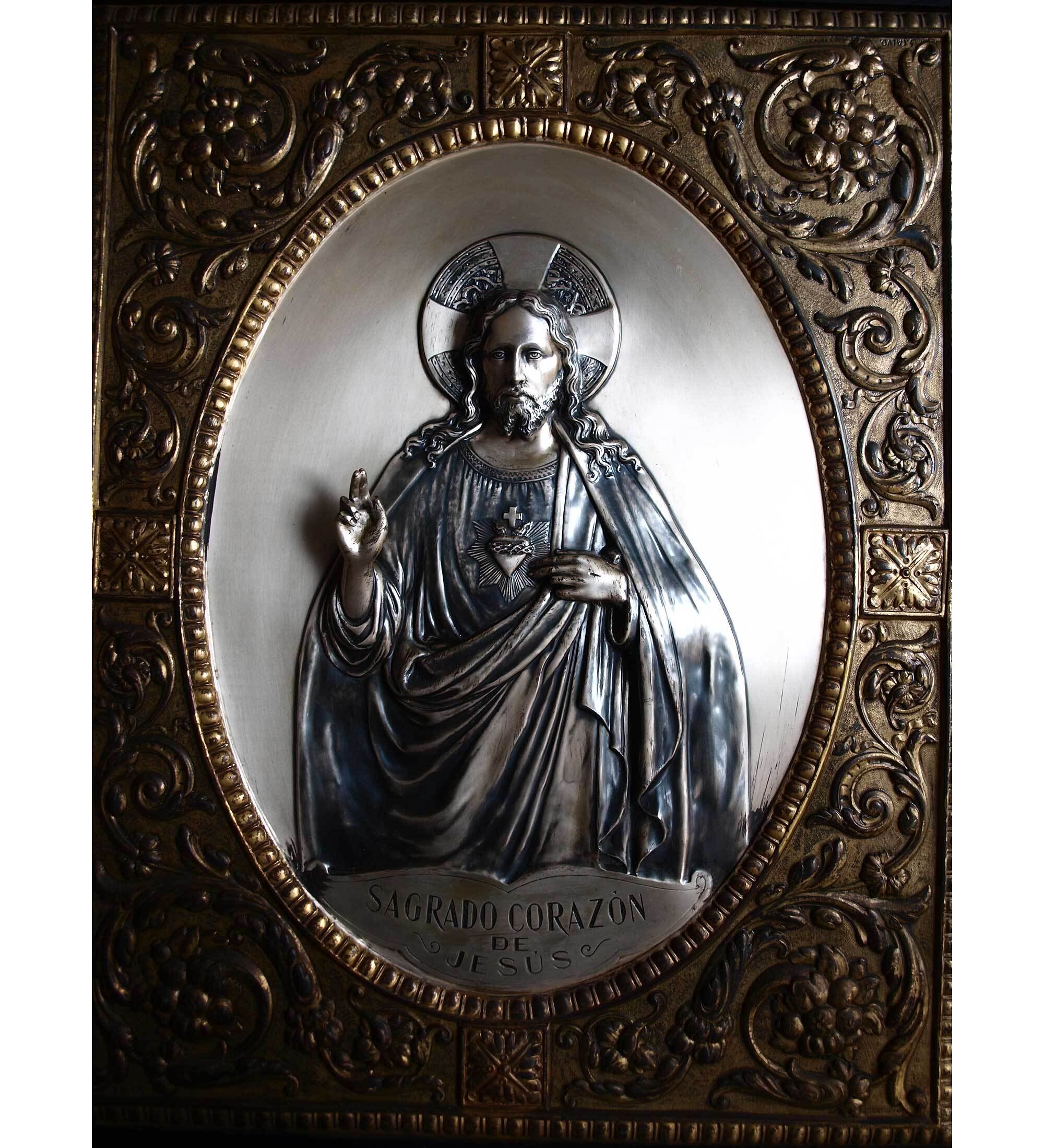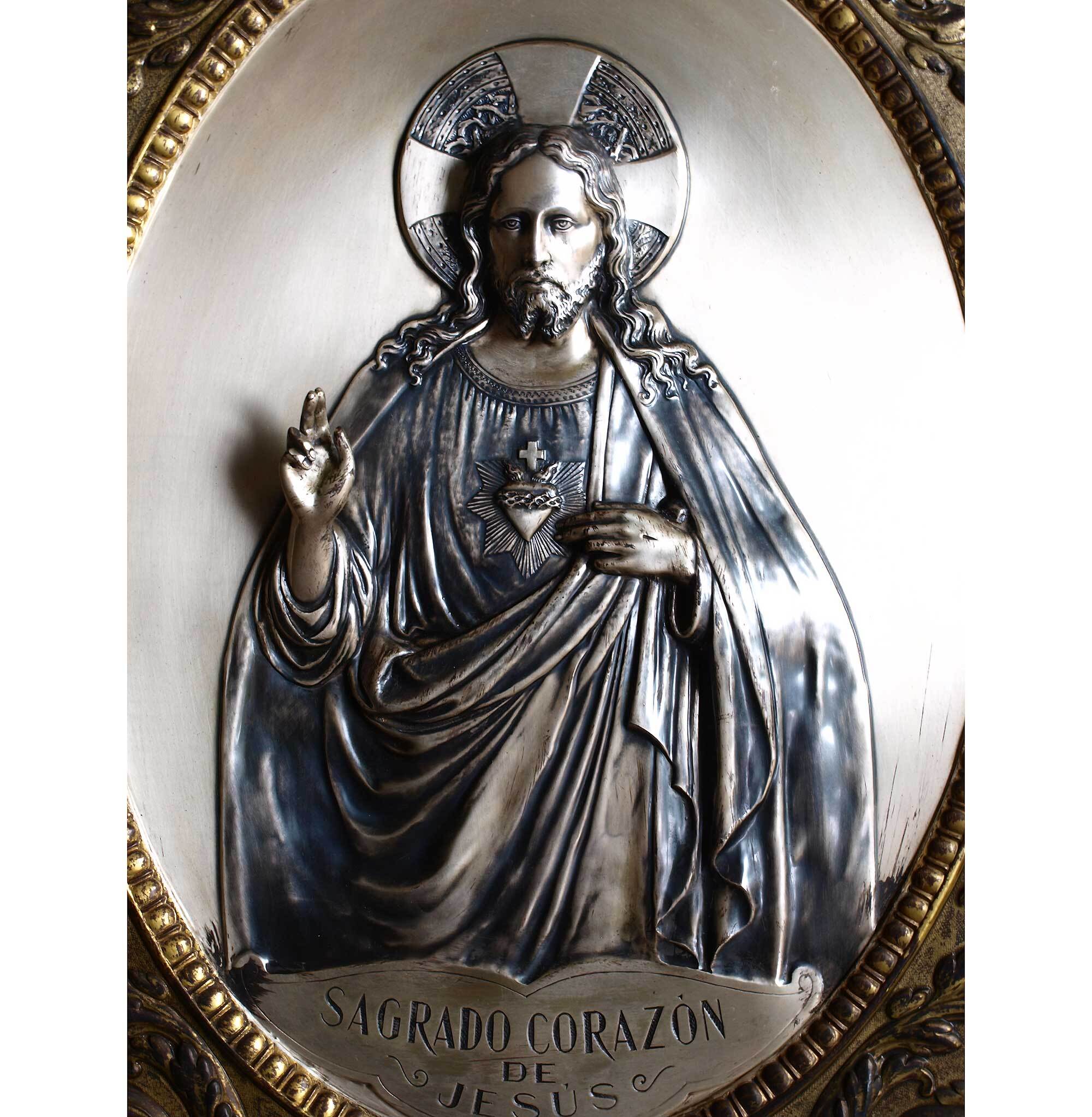 聖心のイエスキリスト 金属レリーフ 74.8cm×63cm イコン プレート ヴィンテージ アンティーク/H160