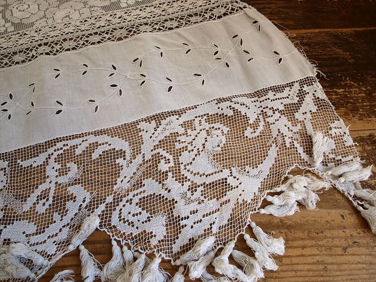 南欧のアンティーク市にて入手、1950年ぐらい。ヴィンテージのレースカーテン。コットン生地と刺刺繍レースの組み合わせ。中ほどの円形フィレレースモチーフから裾のフィレレースまで約37cm、フィレレース長さ47cm、無地部分14cm、裾飾り22cm。ご覧のように痛みあります、写真参照。洗濯済み。ネットに入れてご家庭の洗濯機で洗うことができます。 編み地の性質上、伸縮性があるため記載の寸法に誤差が生じます。大きな物でもあるので寸法の誤差はご勘弁願います。参考資料、リメイクなどにもどうぞ。ファブリック、衣装、手芸関連を得意としております。他の商品も是非ご覧下さい。