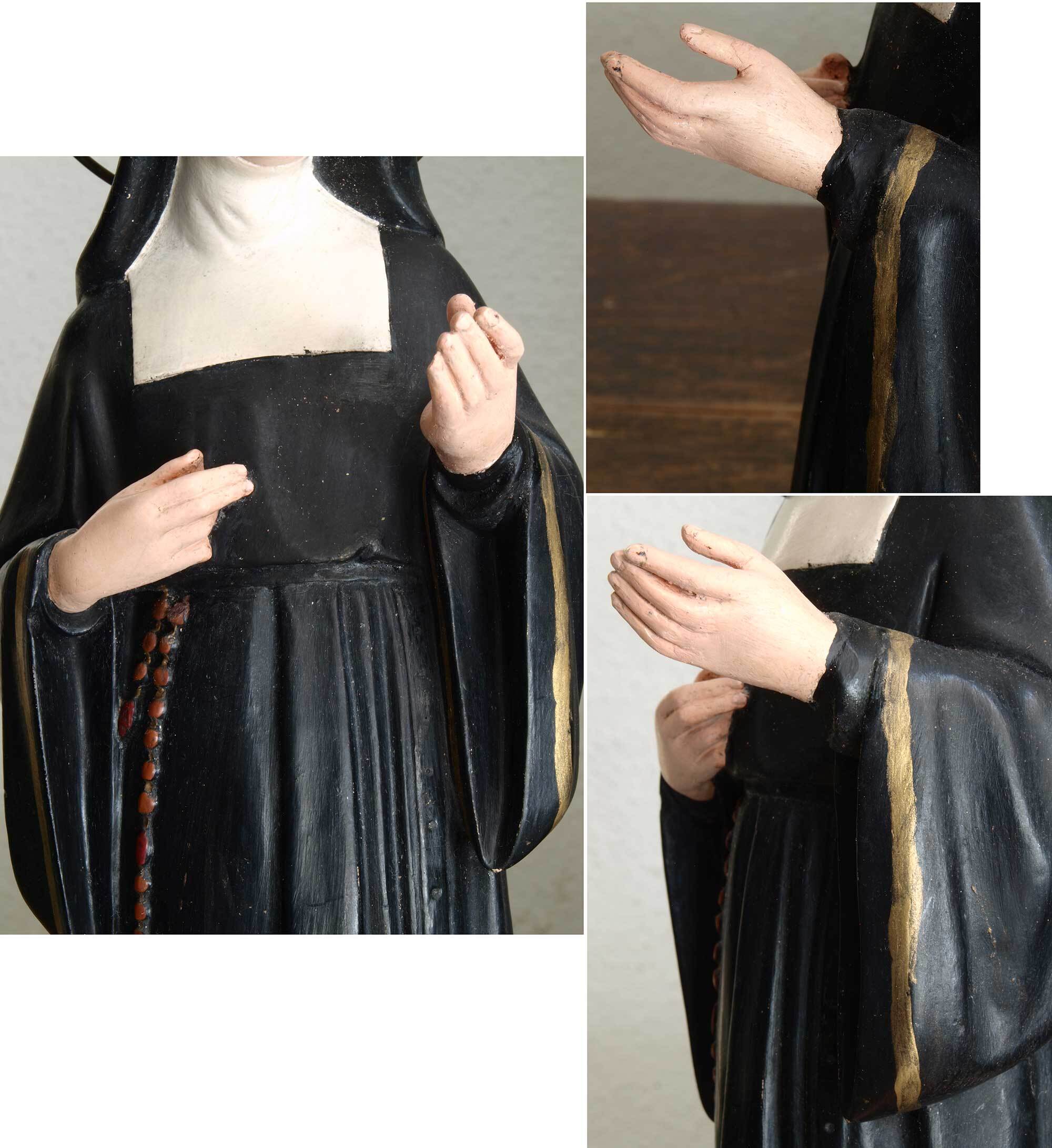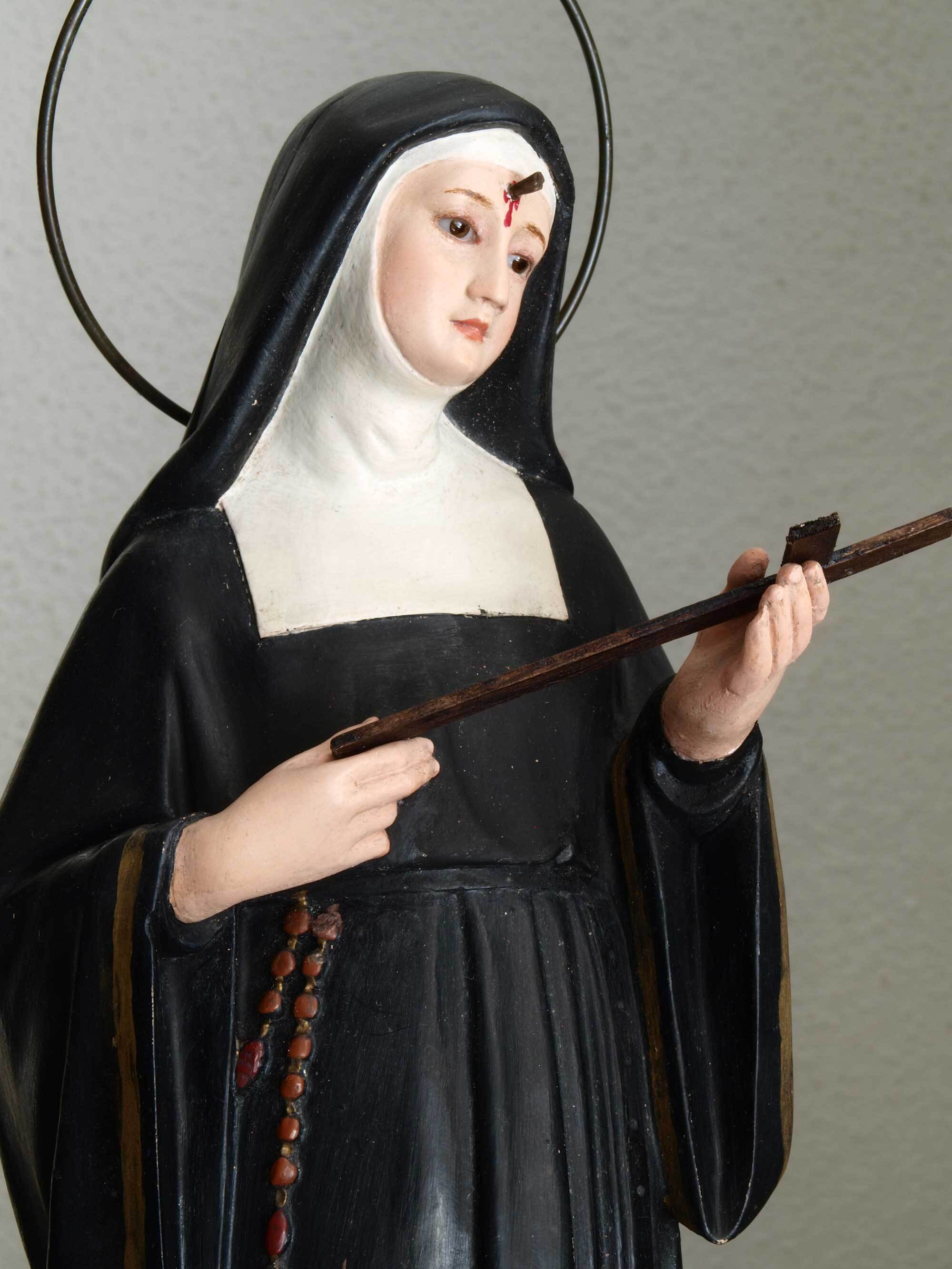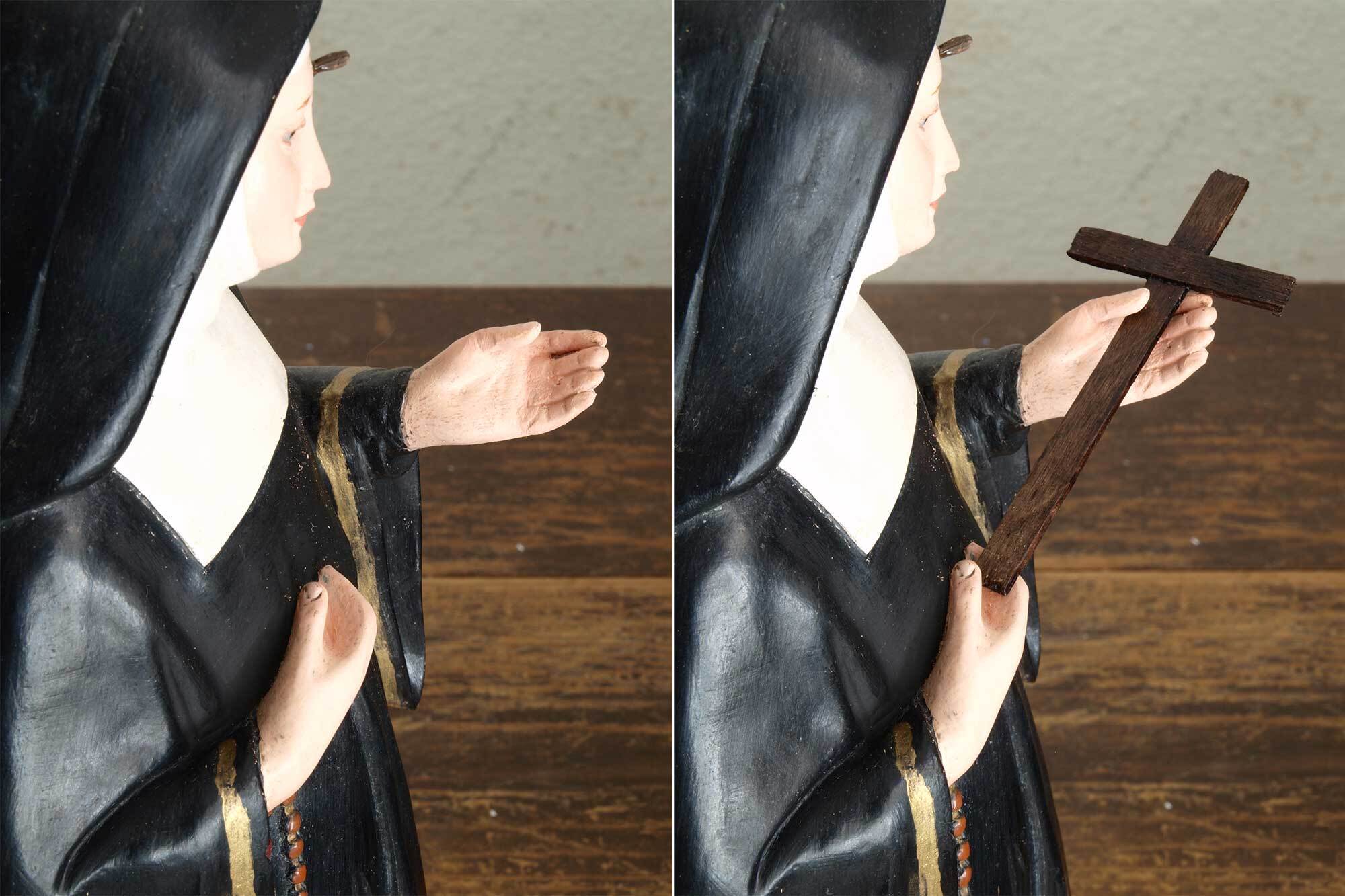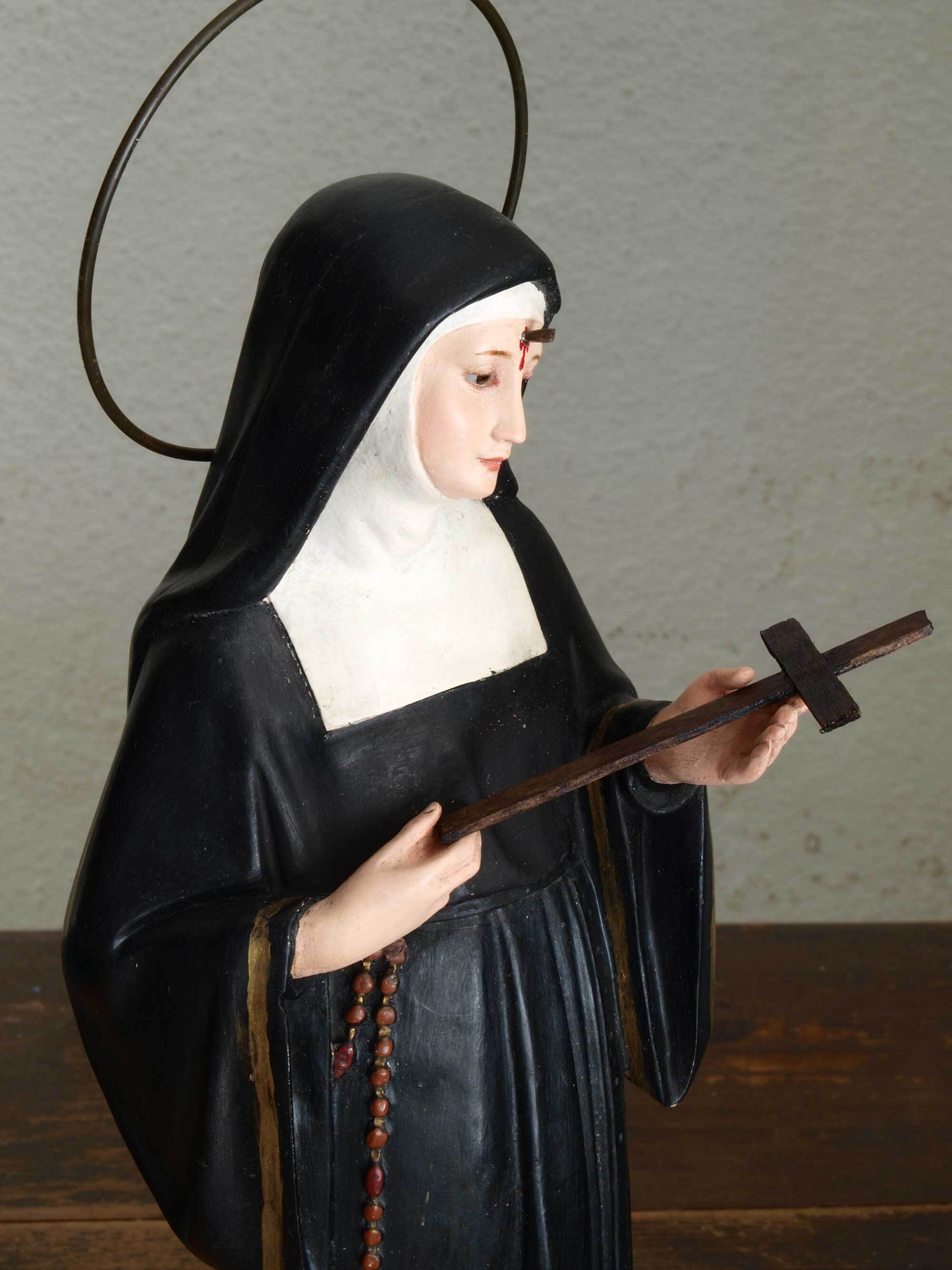 聖リタ像 カッシアの聖リタ35cm 聖人像 イタリアの聖女 グラスアイ 民藝 宗教装飾 工芸 1930年 アンティーク/H217