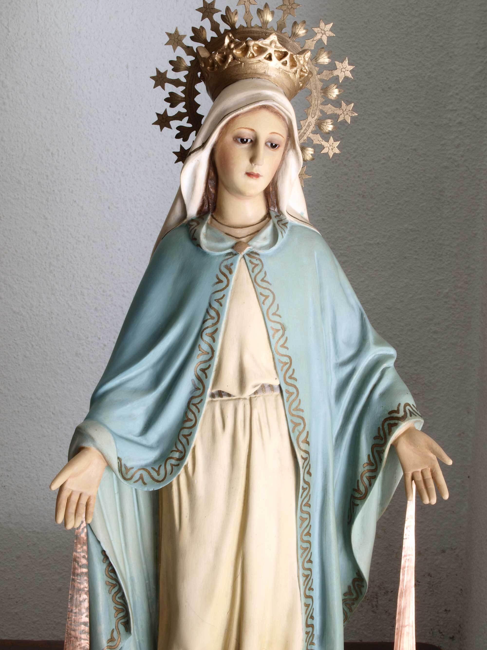 不思議のメダイ聖母マリア像 高65.5cm 聖心の聖母 宗教彫刻 スーベニール 工藝 フランス スペイン アンティーク /H201