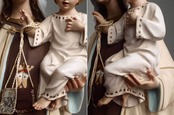 茶色のスカプラリオ カルメル山の聖母子像 高47.5cm グラスアイ 聖母マリアと幼児イエス 宗教彫刻オブジェ1940年 聖人像 民藝 アンティーク /H277