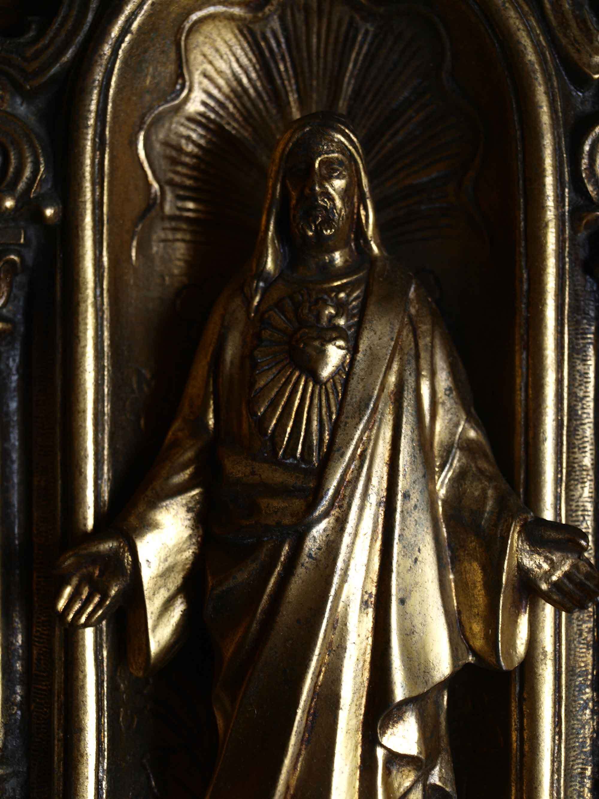 聖心のイエス 42.3cm×12cm 真鍮 ブロンズ レリーフ イコン 聖人像 ヴィンテージ アンティーク /H281
