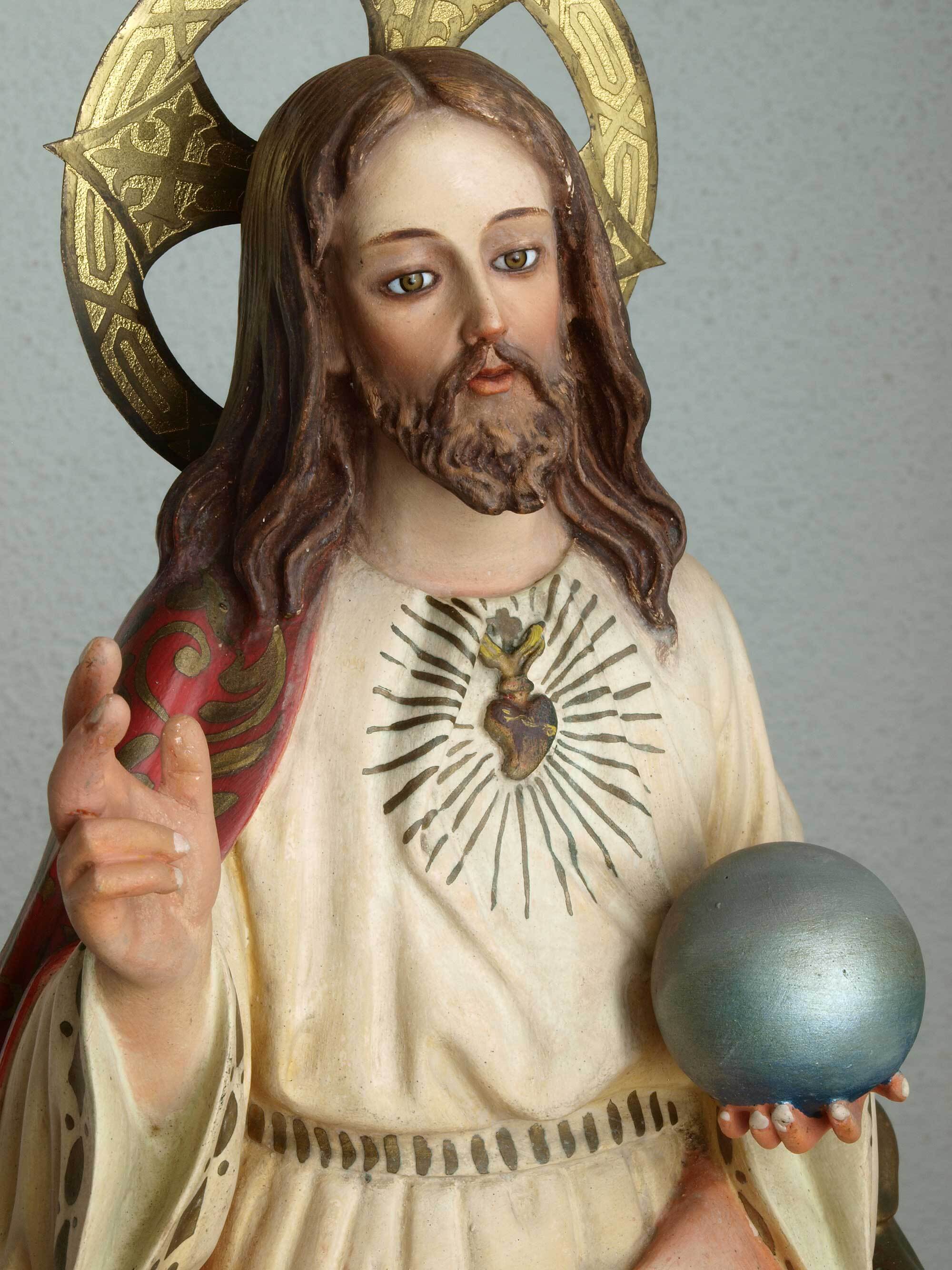 王であるキリスト 坐像 高46 cm サクレクール グラスアイ 清心 宗教彫刻 1940年 座像 ヴィンテージ アンティーク/H244
