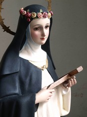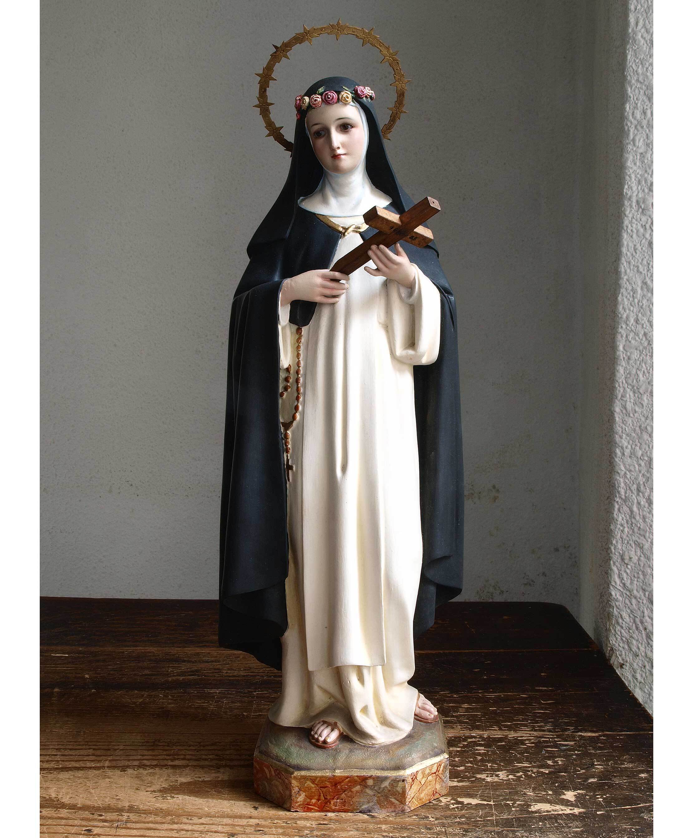 薔薇の冠 リマの聖ローザ像 グラスアイ 45cm 聖母 宗教芸術 宗教彫刻 1940年 アンティーク/H359