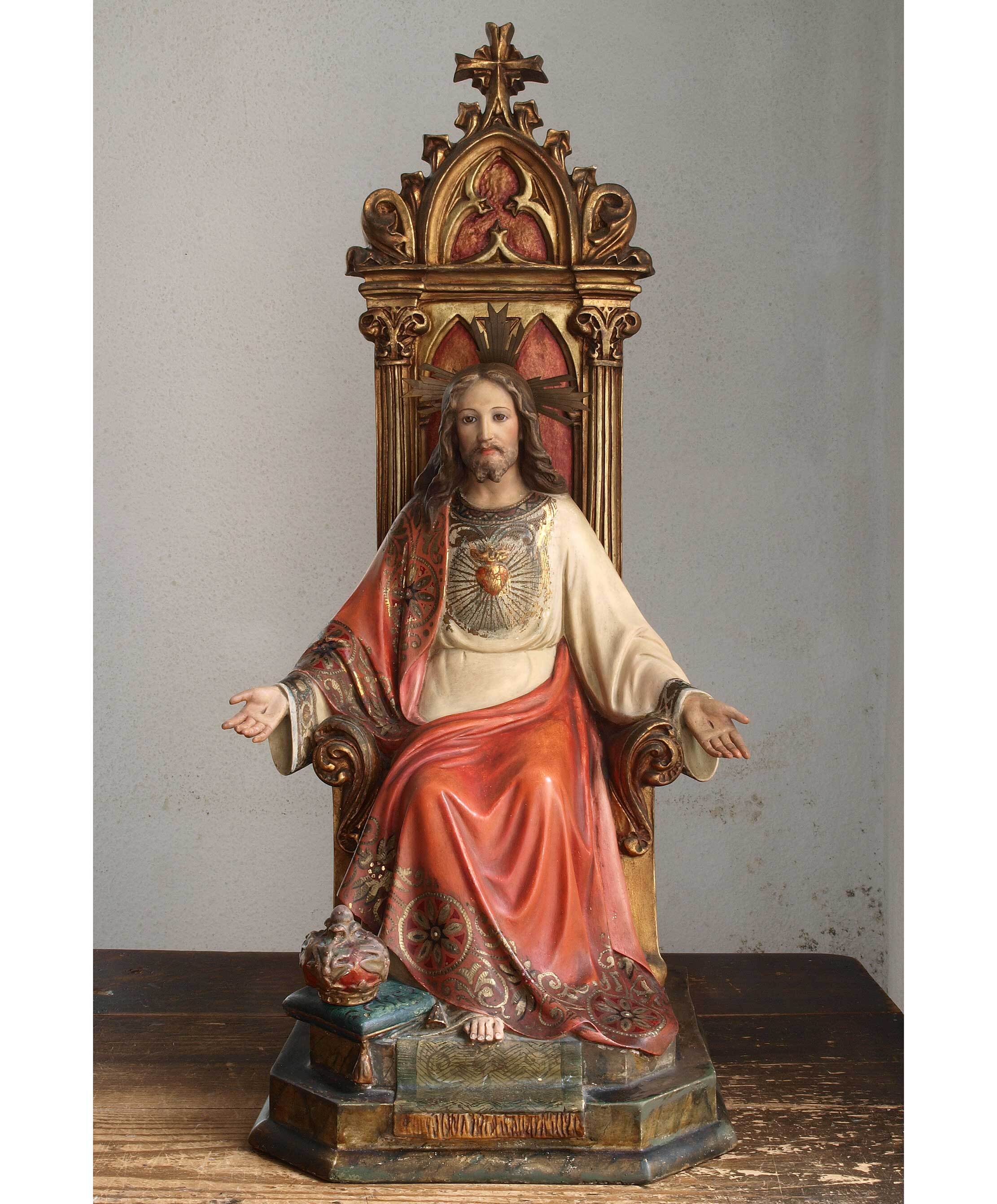 王であるキリスト 坐像高:66.5cm サクレクールグラスアイ 清心 宗教彫刻 1940年 座像ヴィンテージアンティーク/H383