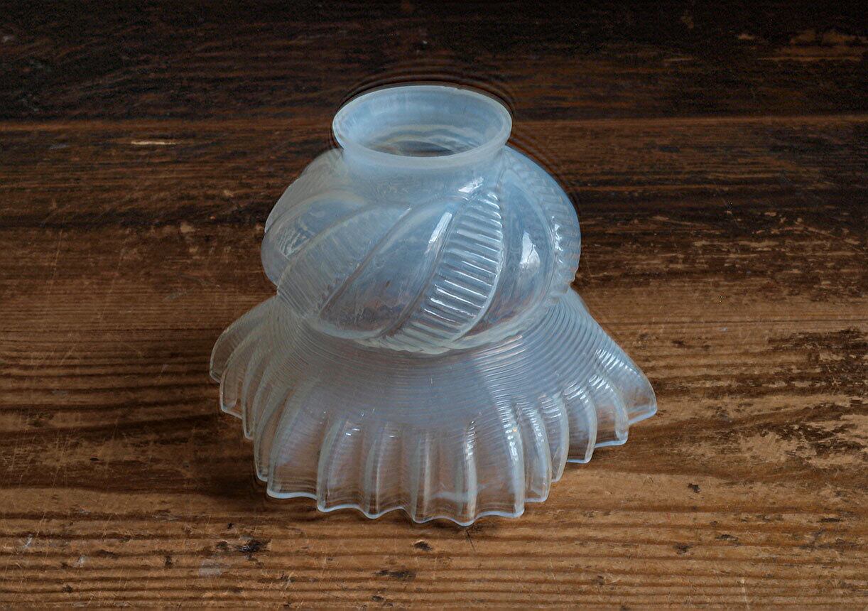 オパールガラス ランプシェード 電笠 直径16cm フリルガラス 大正ロマン オパリンガラス ヨーロッパ フランスアンティーク/H430