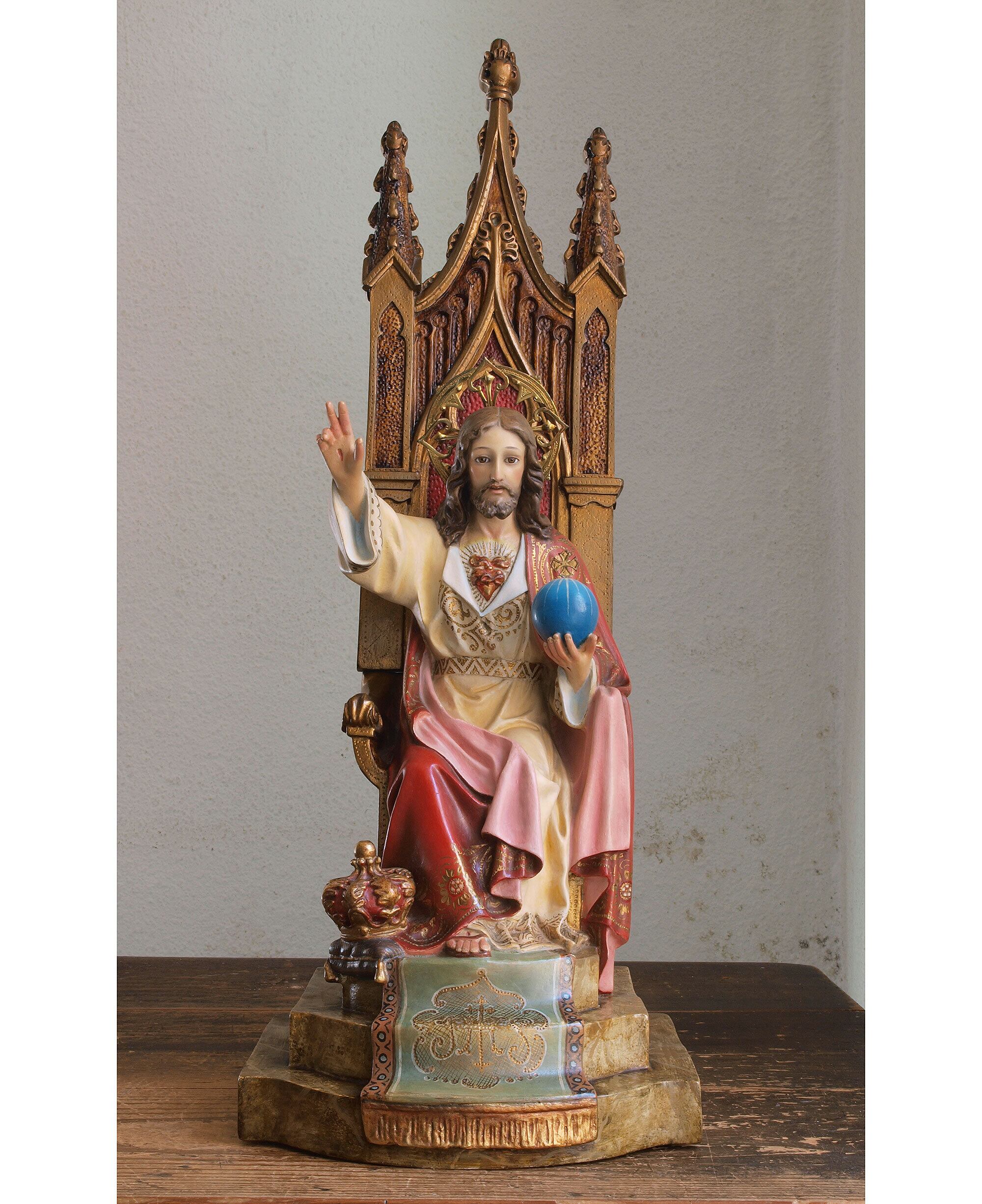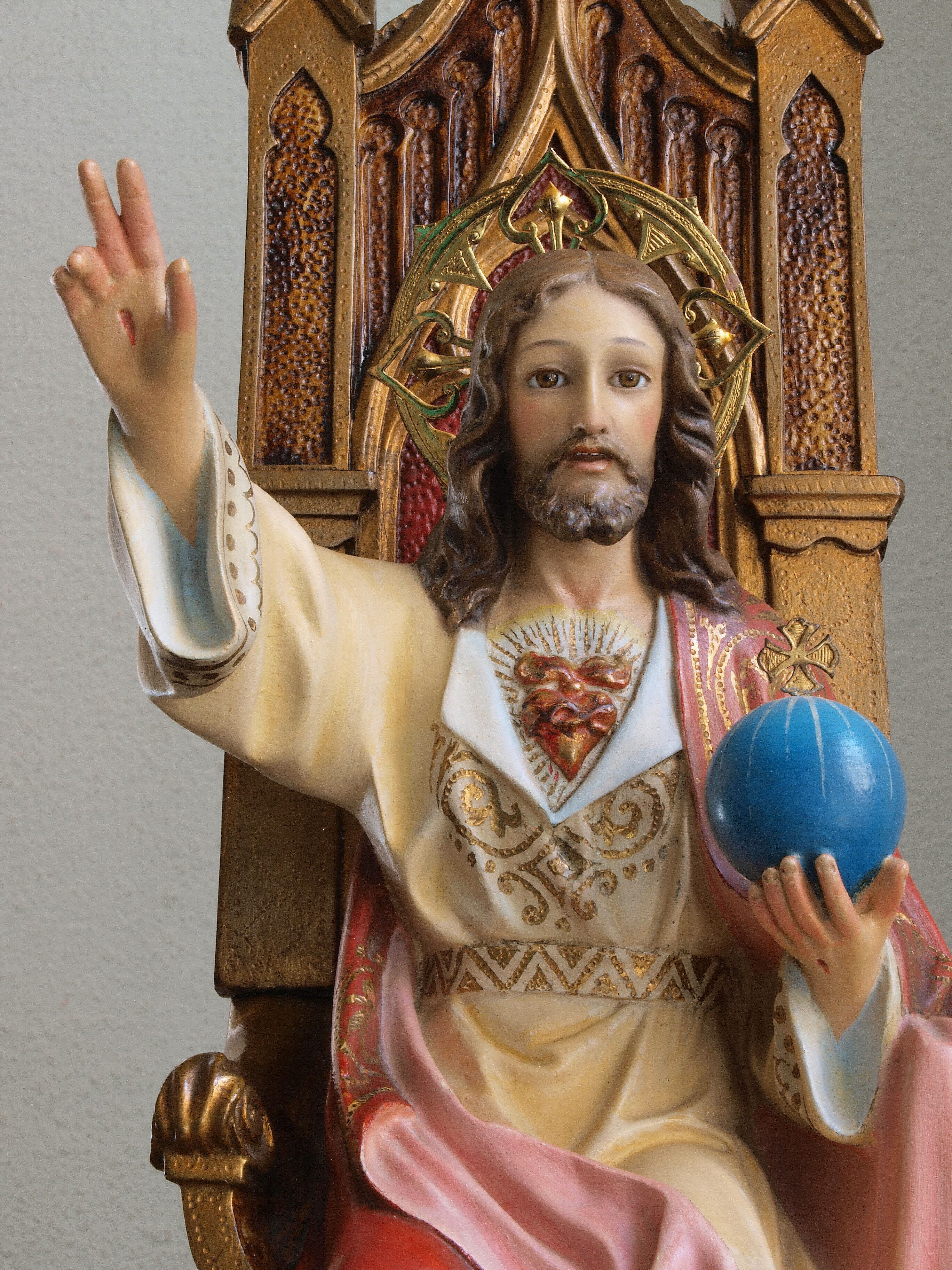 王であるイエス坐像 高56cm サクレクール グラスアイ 清心 宗教彫刻 1940年 座像 スペイン ヴィンテージ アンティーク/H507