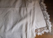 豪華な手刺繍とボビンレースのベッドリネンシーツ+ピロー2枚 cm×270cm+レース10cmイニシャルシーツ ホワイトリネン フランス アンティーク ヴィンテージ/H434
