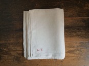 欧州のアンティーク市にて入手。1930年ぐらい。 角に小さな手刺しのイニシャル刺繍とスタンプ、共同洗濯場で他の家庭の物と間違えないようにと刺繍されたものです。少々厚手のさらっとした手触りの平織生地、ナイティなどにも使われる生地です。 洗濯済み、薄いシミがあります、写真でご確認いただけます。シーツとしてご利用可能です。1点モノです、量産品ではないので同じ物はありません。昔の手作業をご堪能下さい。参考資料、リメイクなどにもどうぞ。ファブリック、衣装、手芸関連を得意としております。他の商品も是非ご覧下さい。