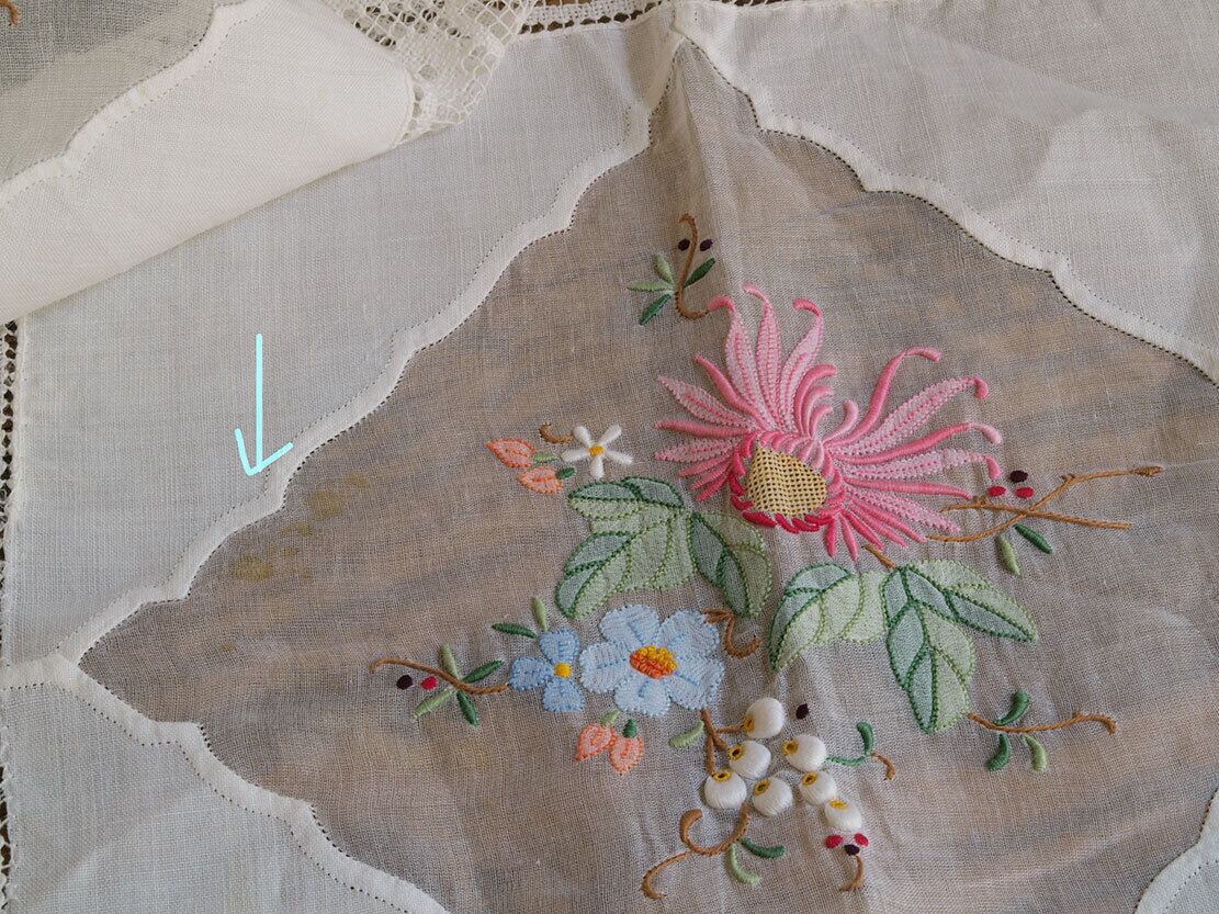 ヨーロッパのアンティーク市にて入手。1950年前後。刺繍とフィレレースのテーブルクロス。未洗濯、薄いシミがあります。ご家庭の洗濯機で洗うことができます。他には特に目立つ醜いダメージは無いと思います。参考資料、リメイクなどにもどうぞ。ファブリック、衣装、手芸関連を得意としております。他の商品も是非ご覧下さい。