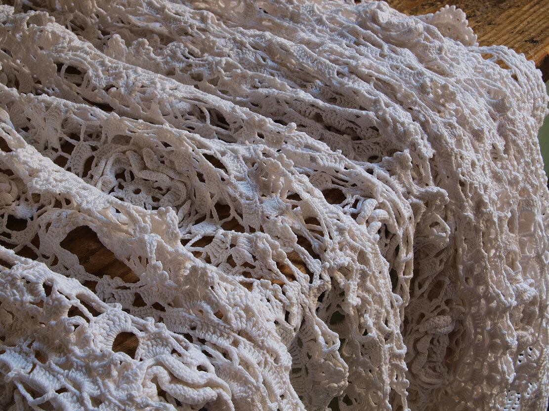 繊細かぎ針編み 花柄クロシェレース ベッドカバー 228cm×155cm モチーフ アイリッシュクロシェ カーテンにも ヴィンテージ /H671