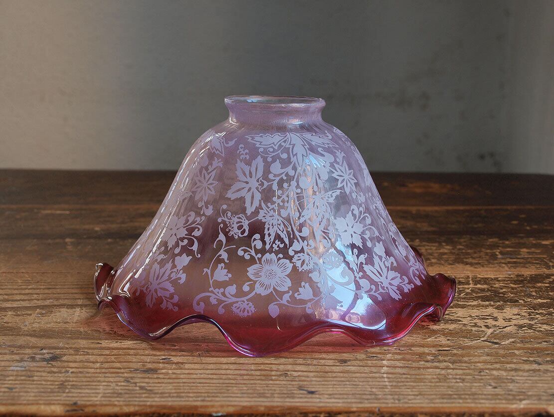 花柄 ガラス ランプシェード電笠 直径20cm フリルガラス 大正ロマン シャビーシック ヨーロッパ フランスアンティーク/ H740