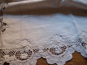 ●サイズ:巾232cm×長276cm+レース13.5cm ●材質: リネンまたはリネン綿混紡 ●色:白