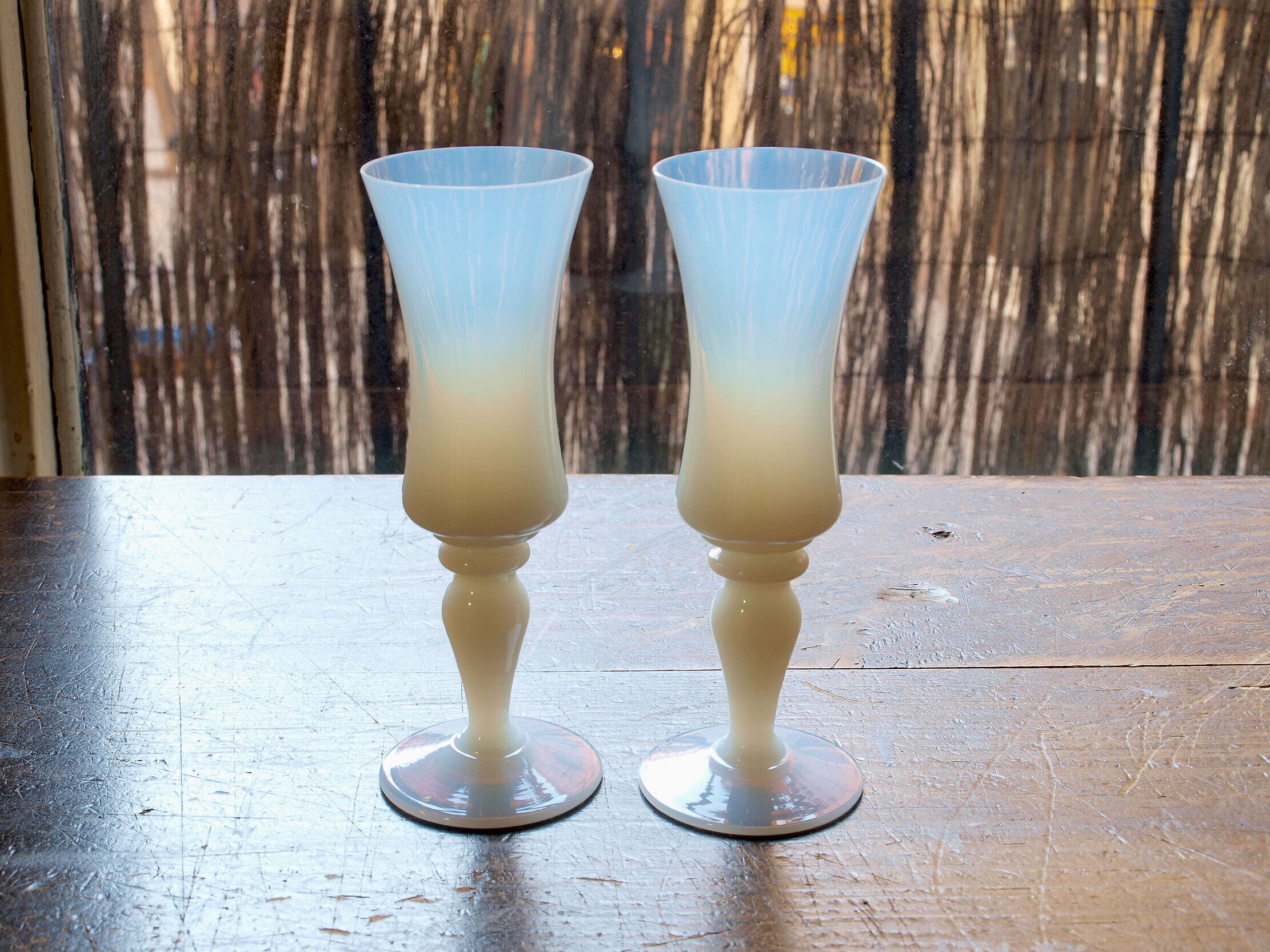 オパールガラス シャンパングラス 1組 15.7cm オパリンガラス フランス アンティーク ヴィンテージ /H811