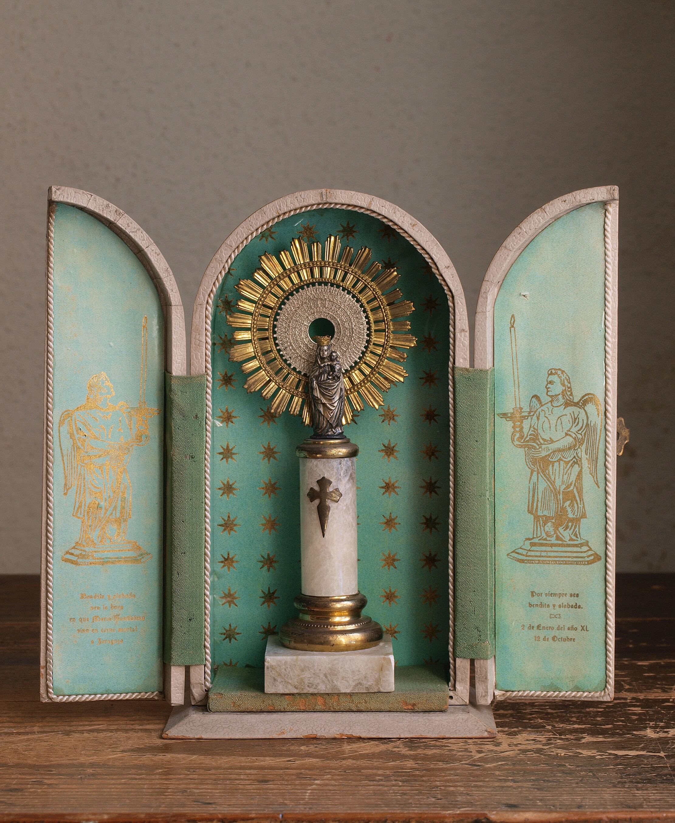 幼子イエスを抱くピラールの聖母 聖母マリアと幼子イエス像 箱入り洋銀 スペイン 宗教装飾 彫金 アンティーク ヴィンテージ/H810