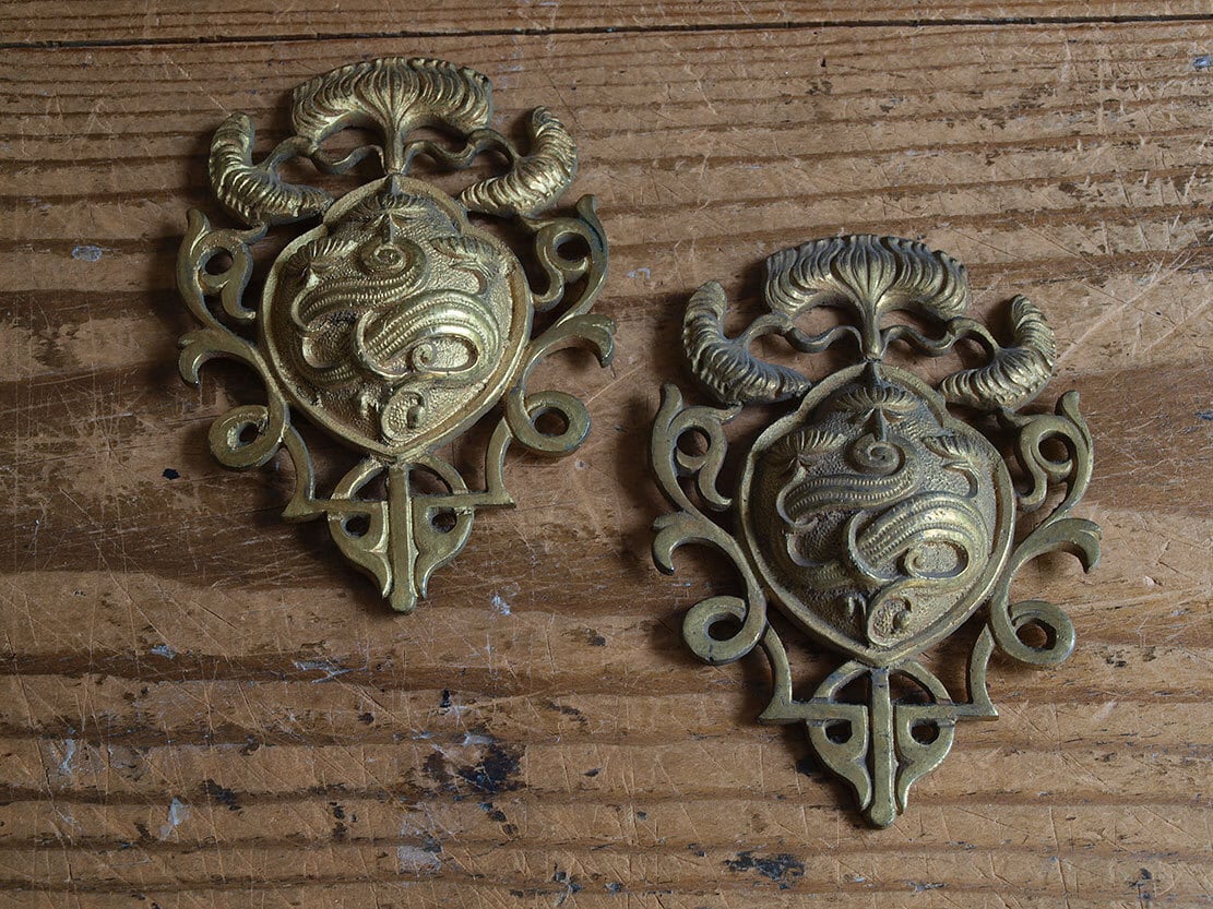 家具部品 2点 ブロンズプレート オーナメント 10.5cm 真鍮 デコレーション アンティーク ヴィンテージ/H933