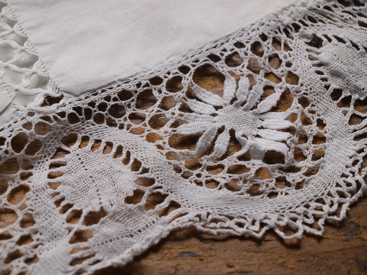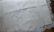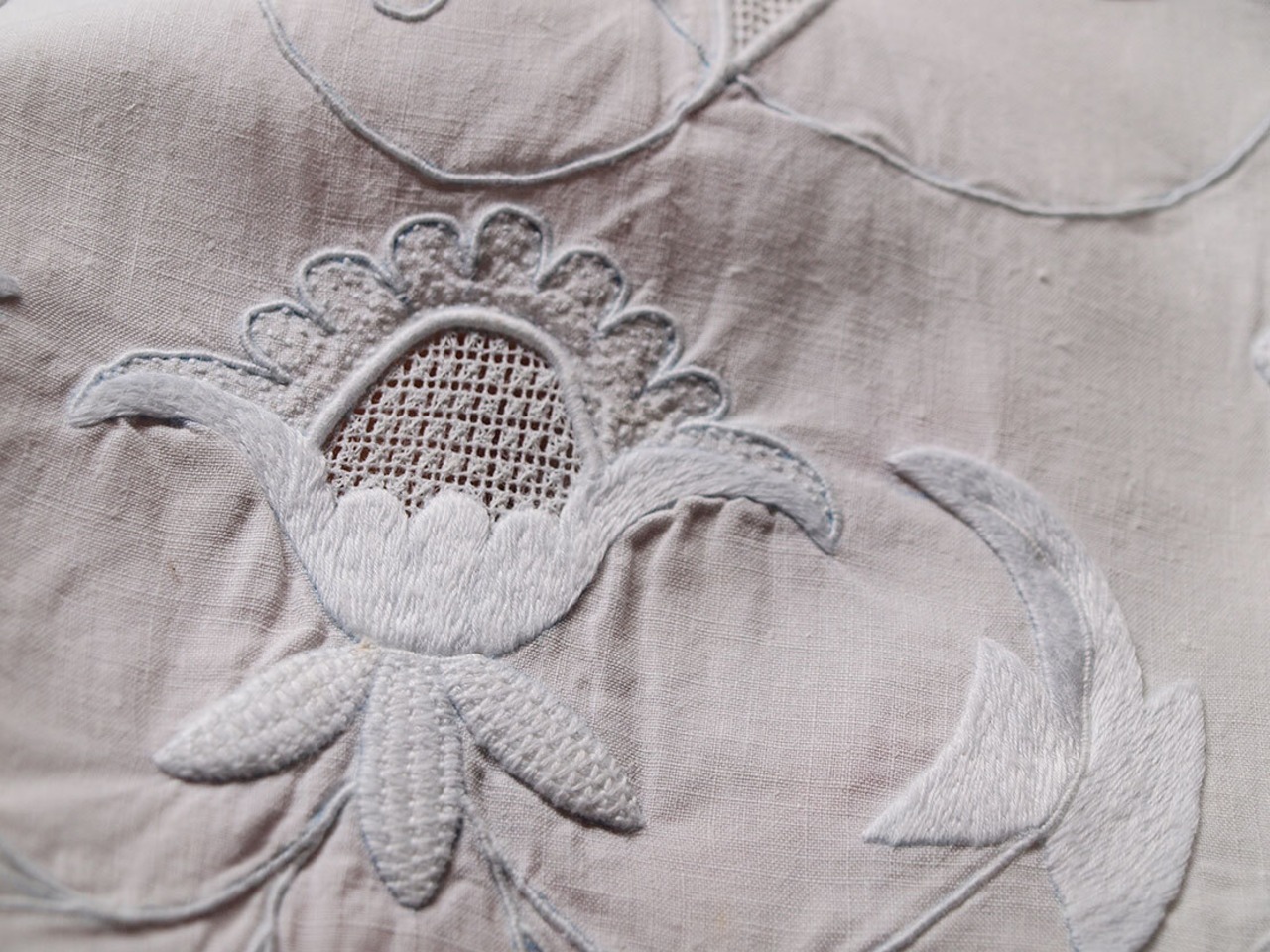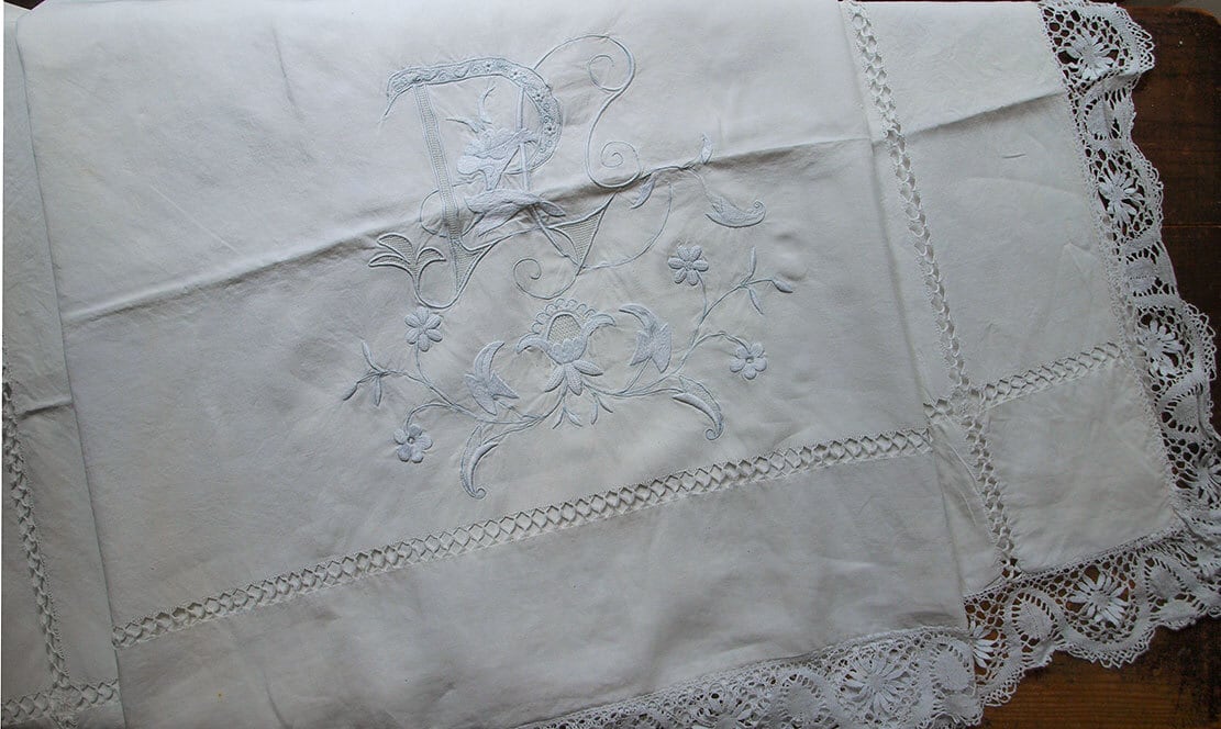 豪華婚礼用 刺繍とニードルレースのシーツ 235cm×長270cm+ボビンレース ベッドリネン ホワイトリネン シャンブルリネン フランス アンティーク/J091