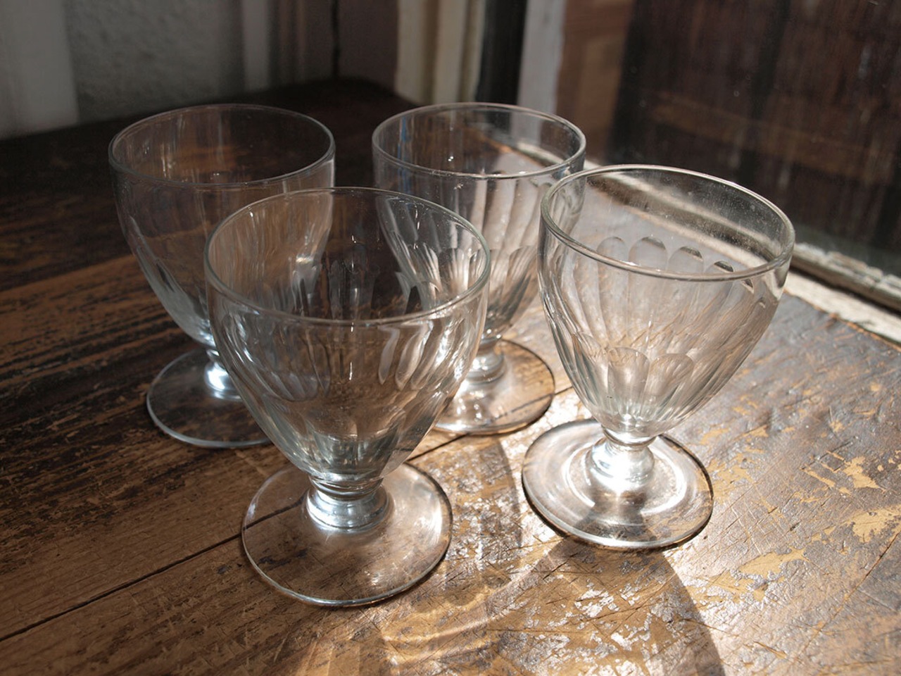 古いグラス4個 カットガラスのワイングラスフランス 40年代 50年代 ヴィンテージ アンティーク/J160