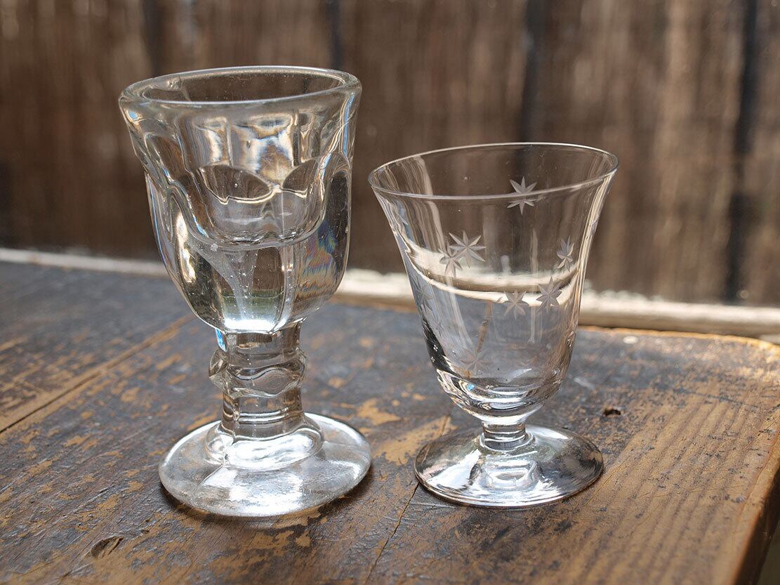 古いグラス3個 星の模様のカットガラス 厚底グラス 40年代 50年代 フランス ヴィンテージ アンティーク /J159