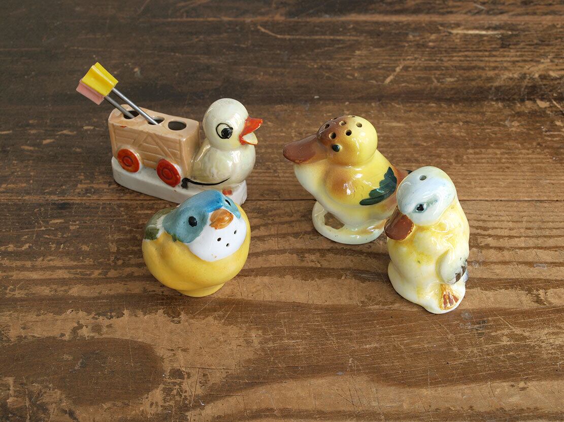 小鳥のフィギュリン 陶器 調味料入れ4個 小物入れ 1940s 1950s オリーブ入れ フランス スーベニール アンティーク ヴィンテージ /J167