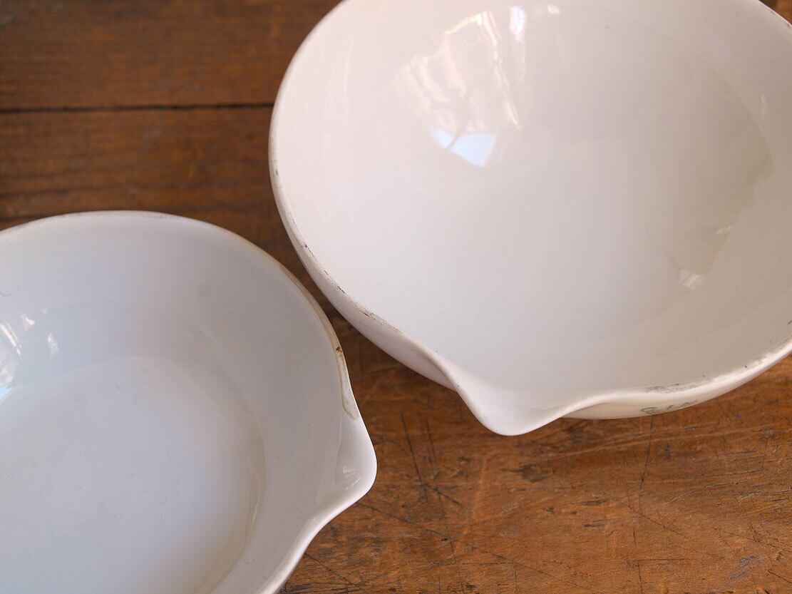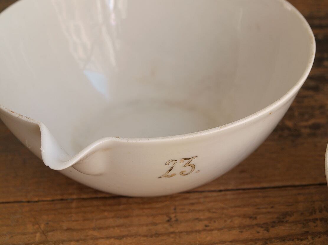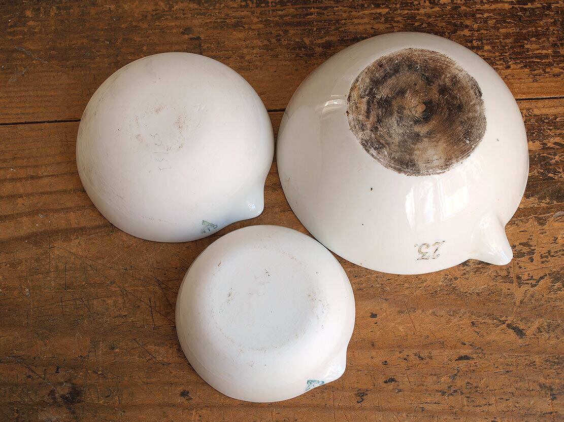 白い陶器の乳鉢 3点 ドイツ製? すり鉢 片口 モルテロ 磁器 ファーマシー 南欧 古道具 1930年ヨーロッパ 欧州 アンティーク/J397
