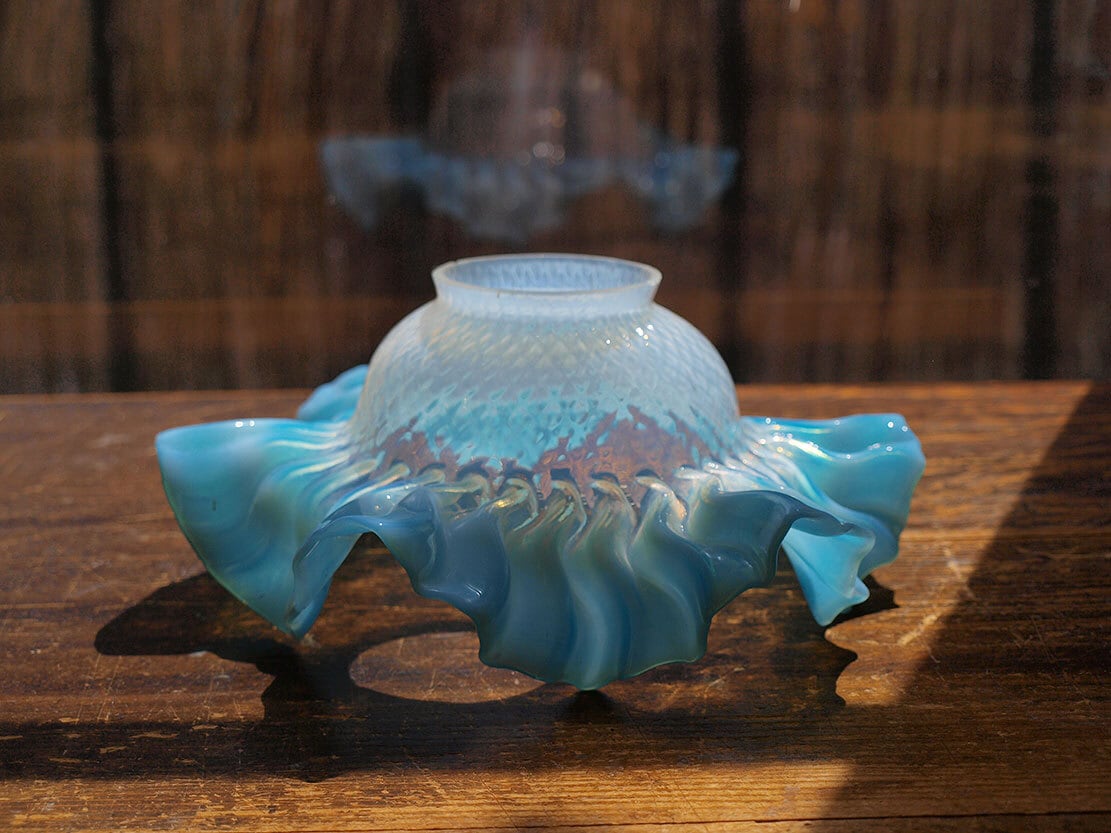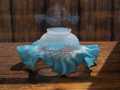 オパールガラスに水色のフリル ガラス ランプシェード 電笠 直径19cm 大正ロマン オパリンガラス ヨーロッパ フランスアンティーク/J507