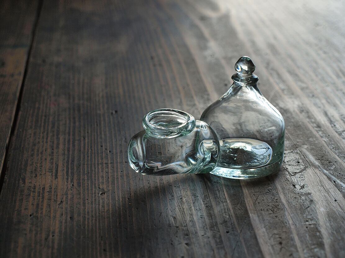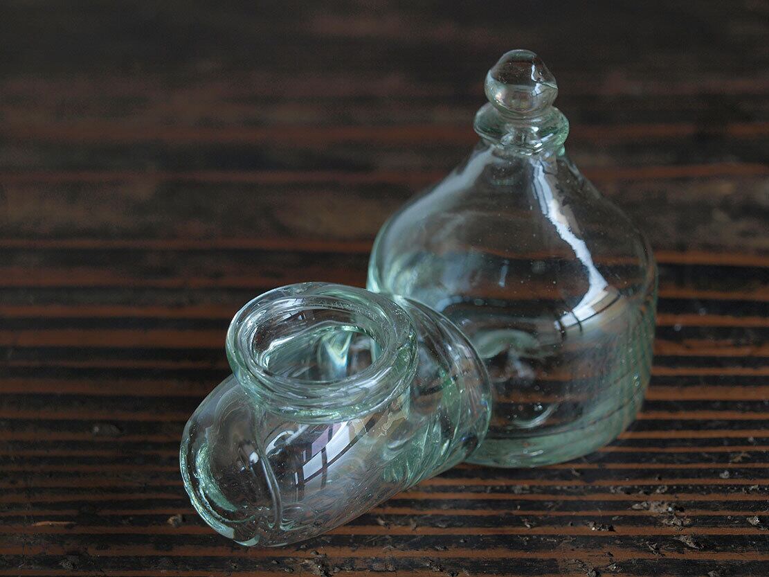 小さな吹きガラスの小鳥の水入れ 容器 古道具 硝子 花器 1920年代 ヨーロッパ フランス アンティーク/J623