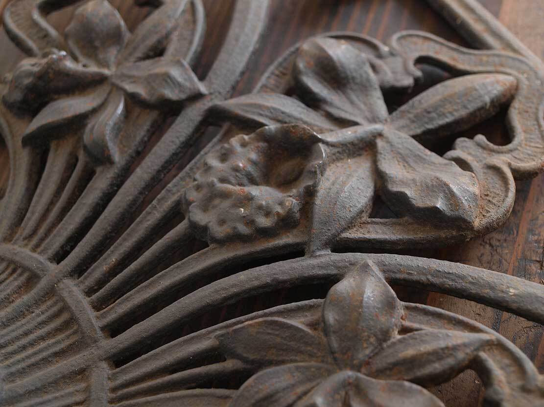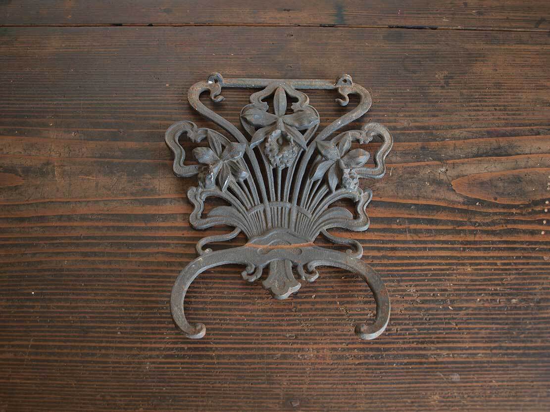 アイアン 蘭のモチーフ アール・デコ レリーフ 金属家具部品 鋳物 残欠 サルベージ デコレーション アンティーク /J694