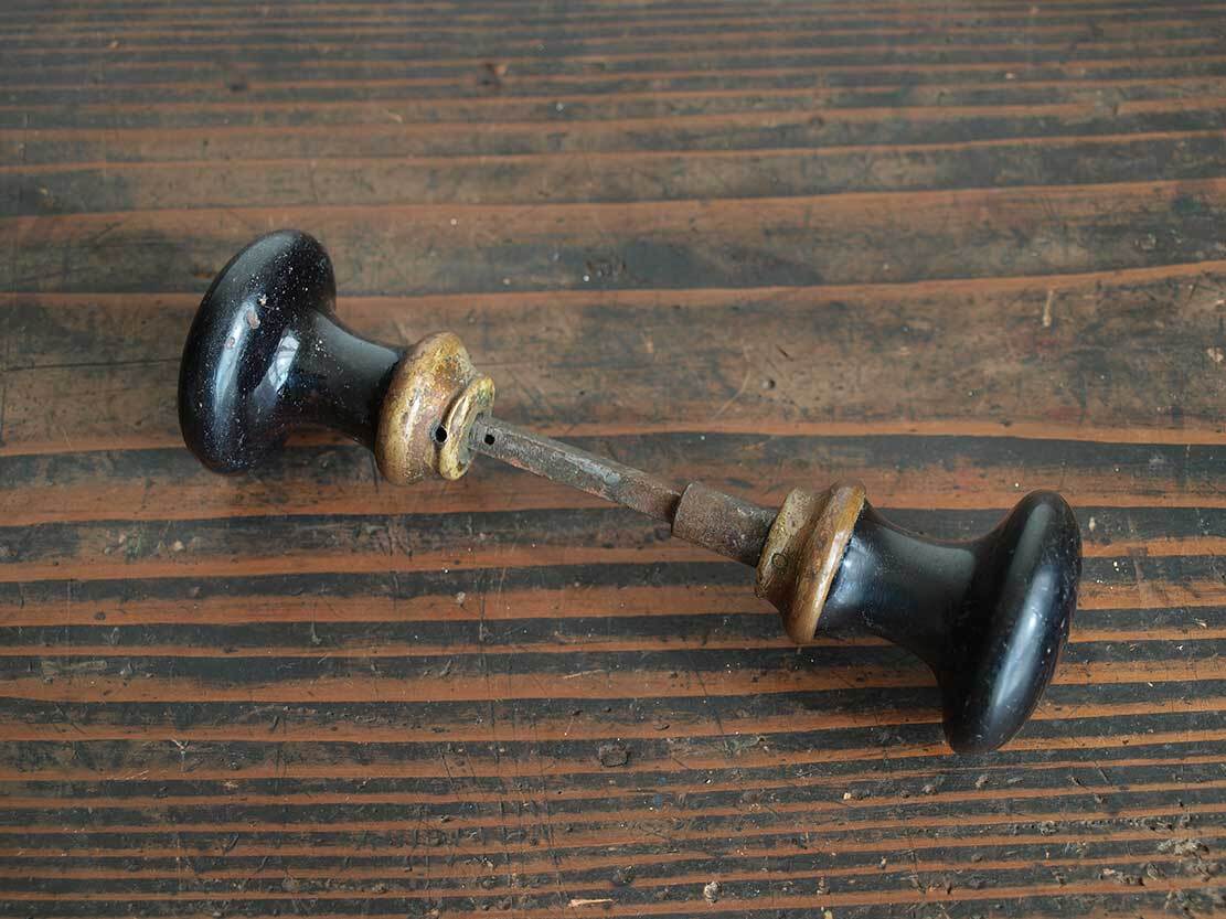 黒い琺瑯のドアノブ 直径4.8cm ドアハンドル サルベージ インダストリアル ヨーロッパ アトリエ 古道具 アンティーク/ J707
