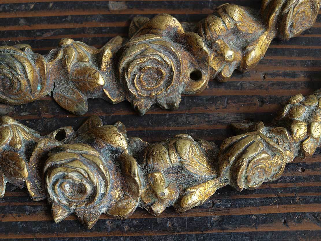 属家具部品 ブロンズ 2個 ガーランド プレート 22cm×11cmサルベージ フランス オーナメント デコレーション アンティーク /J721