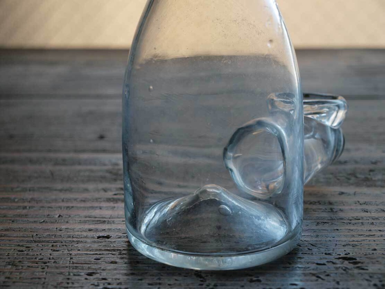 小さな吹きガラスの小鳥の水入れ ゆらゆらガラス 容器 古道具 硝子 花器 1920年代 ヨーロッパ フランス アンティーク/J827