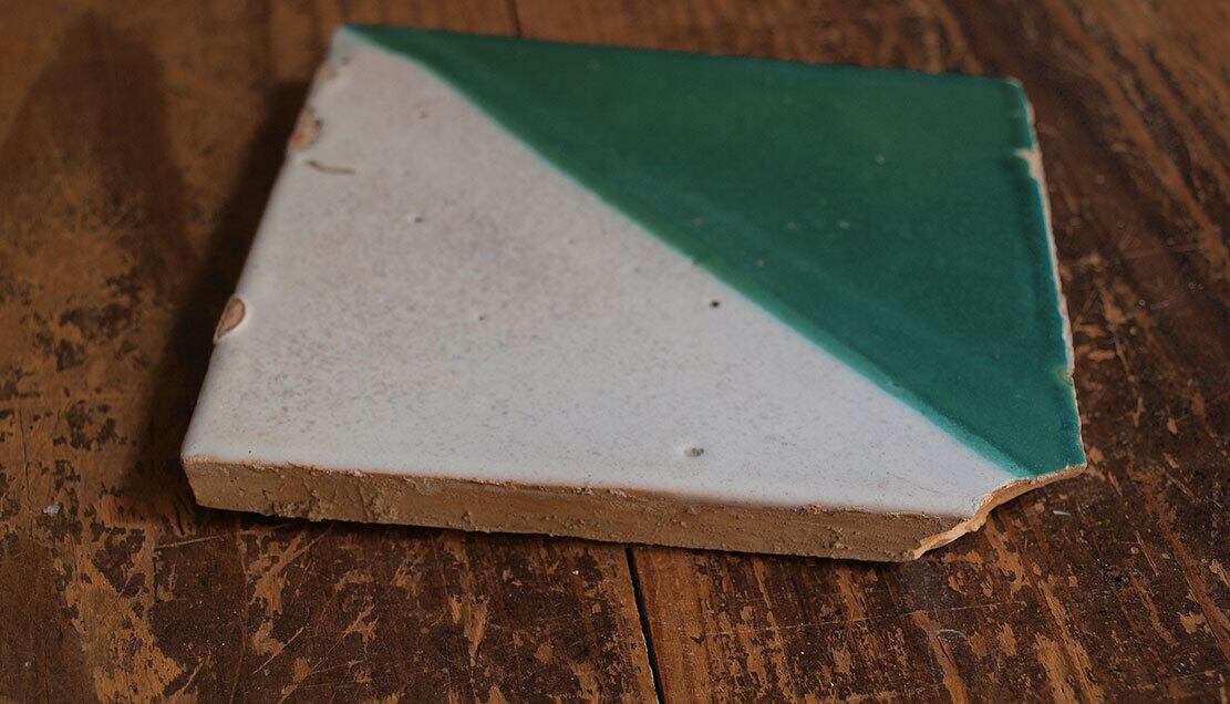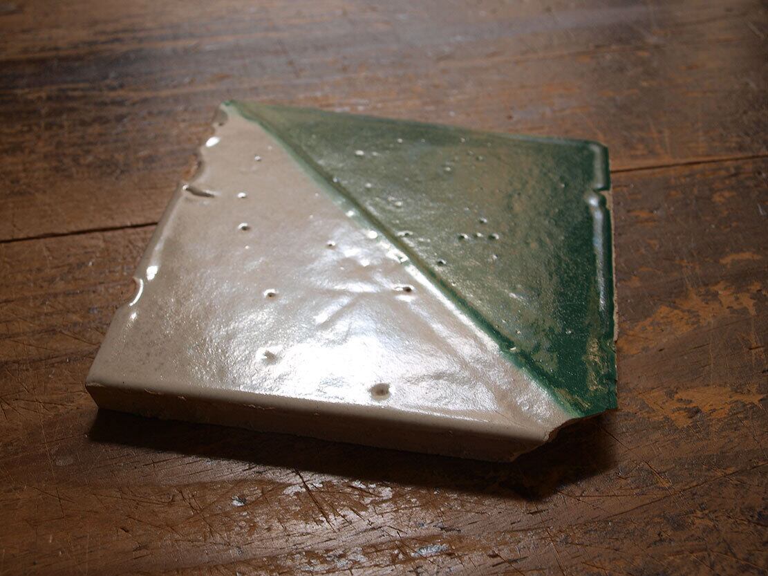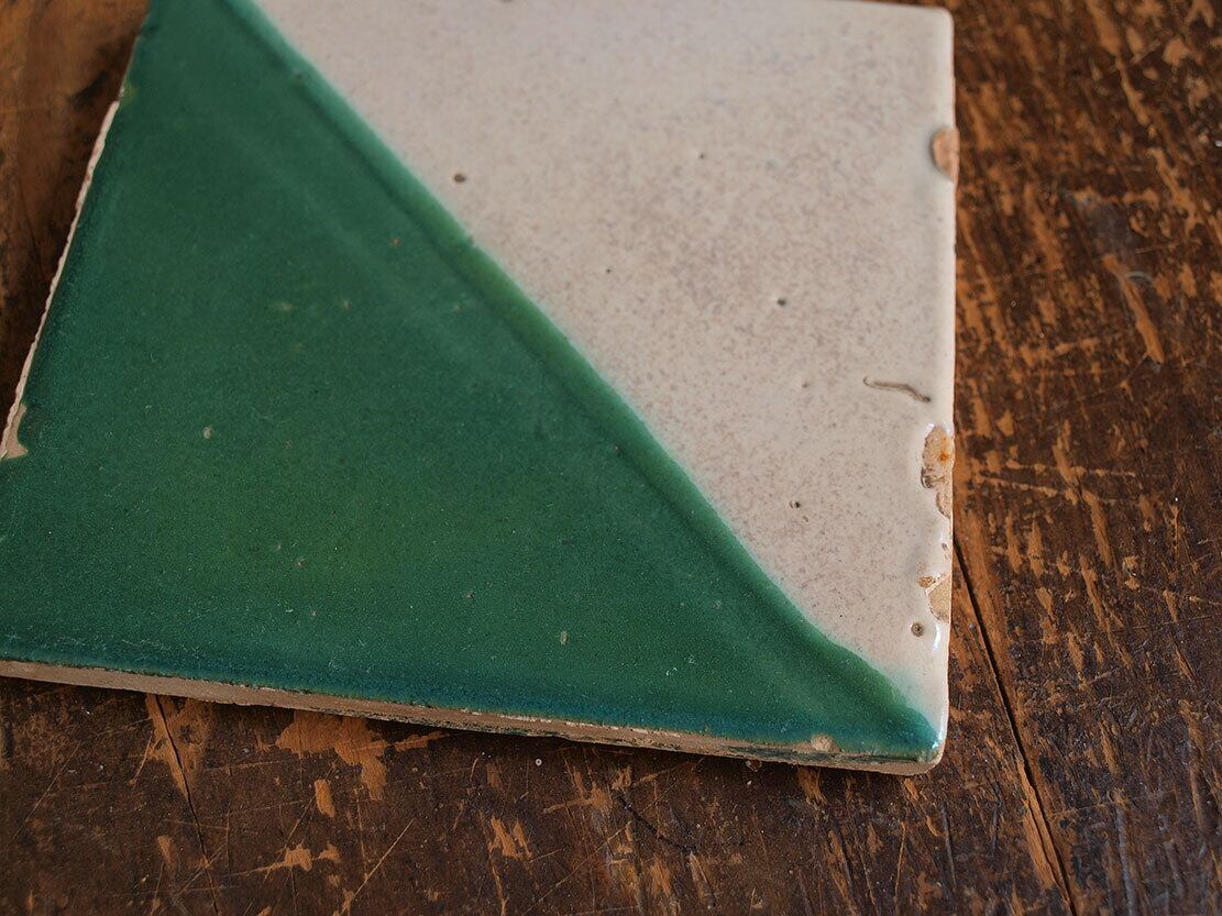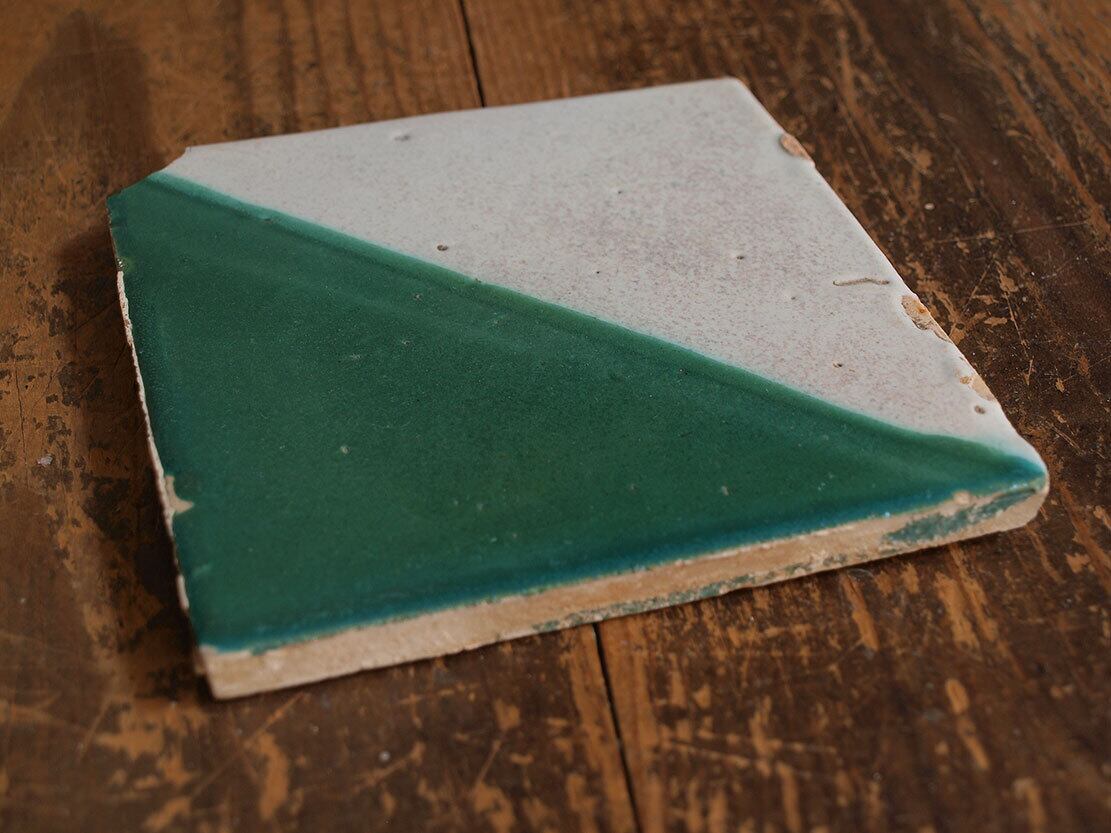 緑×白釉薬 スペイン 18世紀 タイル カタルーニャ スペインデルフト 三角模様 スペイン古陶 アンティーク /J573