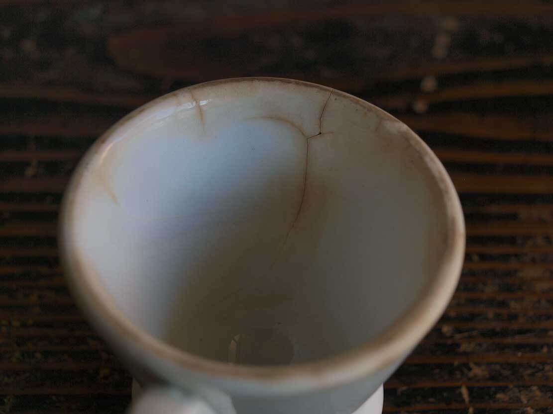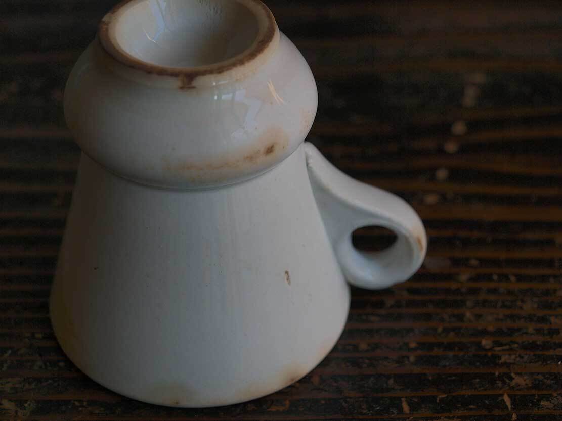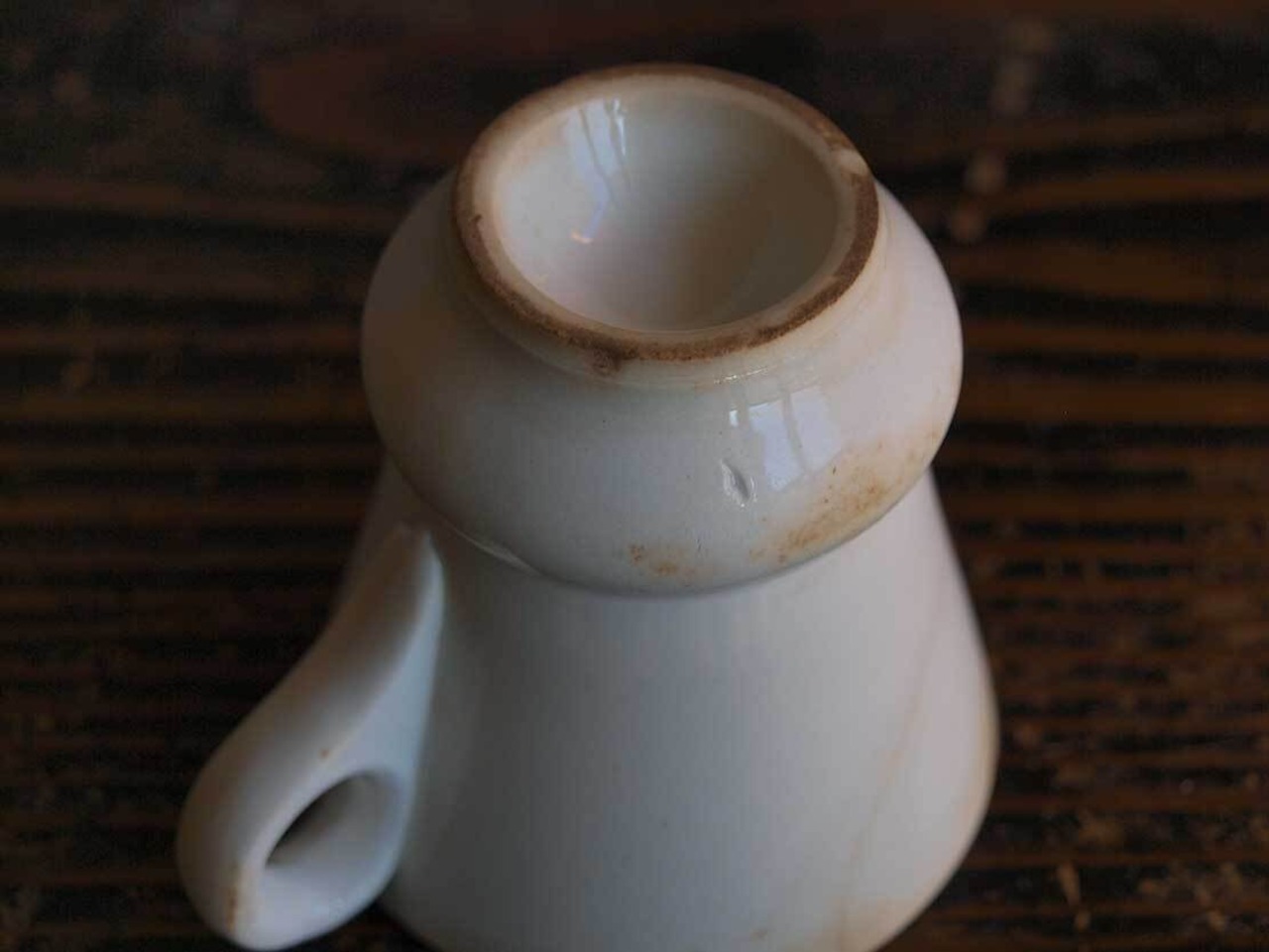 白釉薬 象牙色に枯れたカップ ブリュロカップ 6.8cm 陶器 1910年代 スペイン古陶 コーヒーカップ エスプレッソ アンティーク/J916