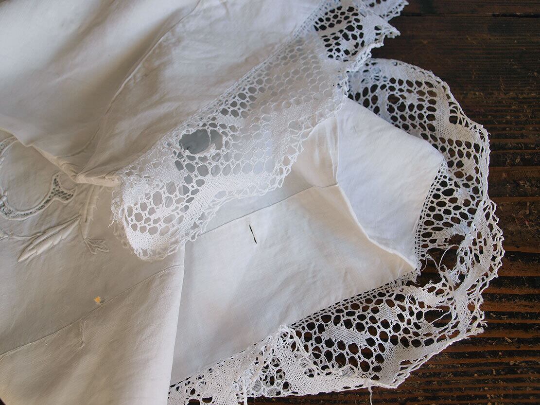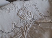 刺繍ピローケース レース 刺繍レース ニードルレース ベッドリネン シャビーシック ヨーロッパ アンティーク /K034